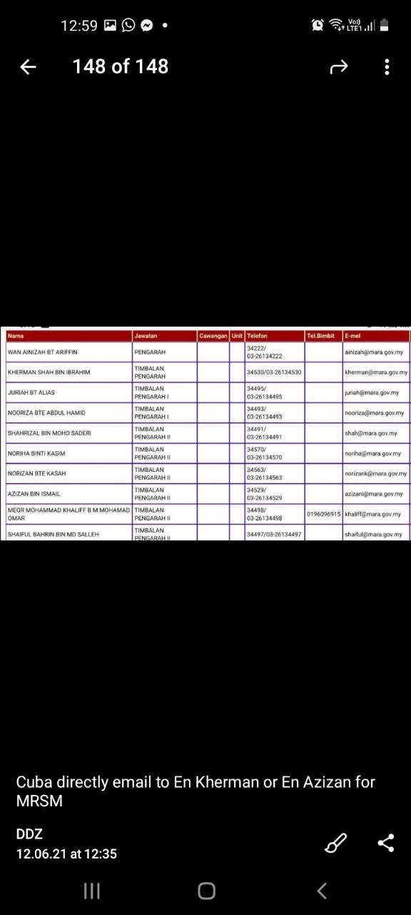 4. Email sahaja Surat Rayuan Mrsm tu ke Mara. Elok buat 2 Surat. Satu email kepada En Kherman dan satu lagi email ke