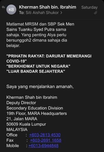 Disebabkan Lockdown PKP ni, Email sahaja surat rayuan 3rd Intake tu.