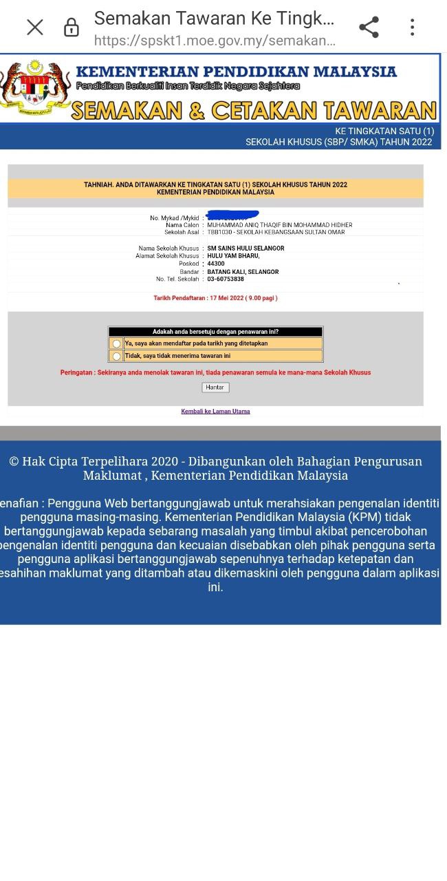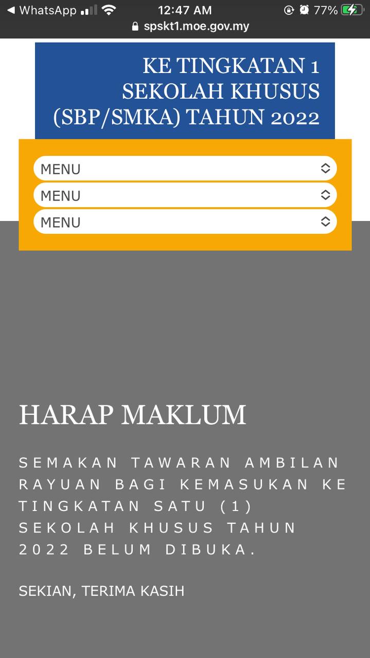 Ni adalah message untuk mereka yg masih mengharap untuk mendapatkan tempat di MRSM.