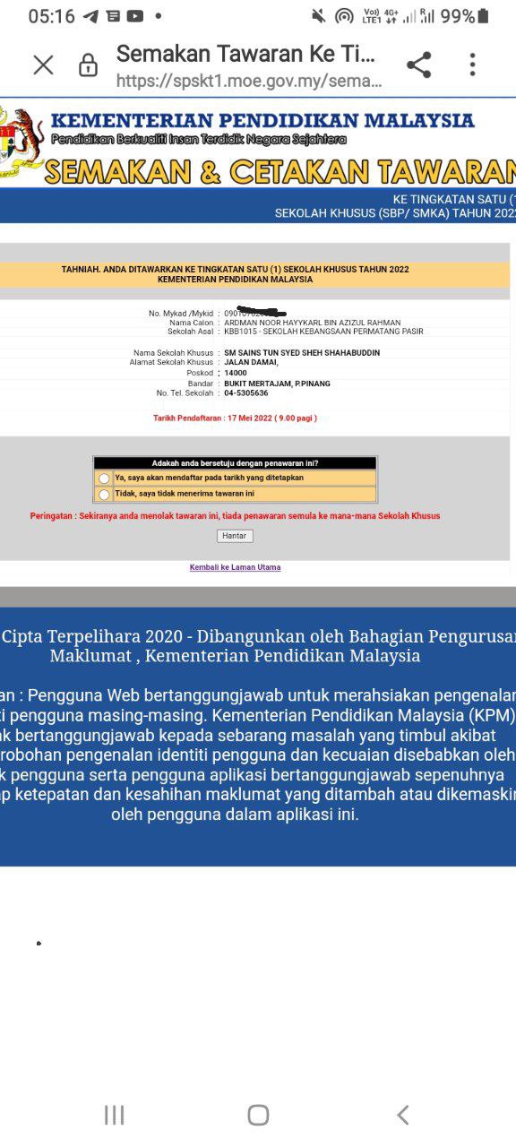 Jadi bagi semua yg inginkan tempat di MRSM harap dapat bersabar sedikit lagi je.