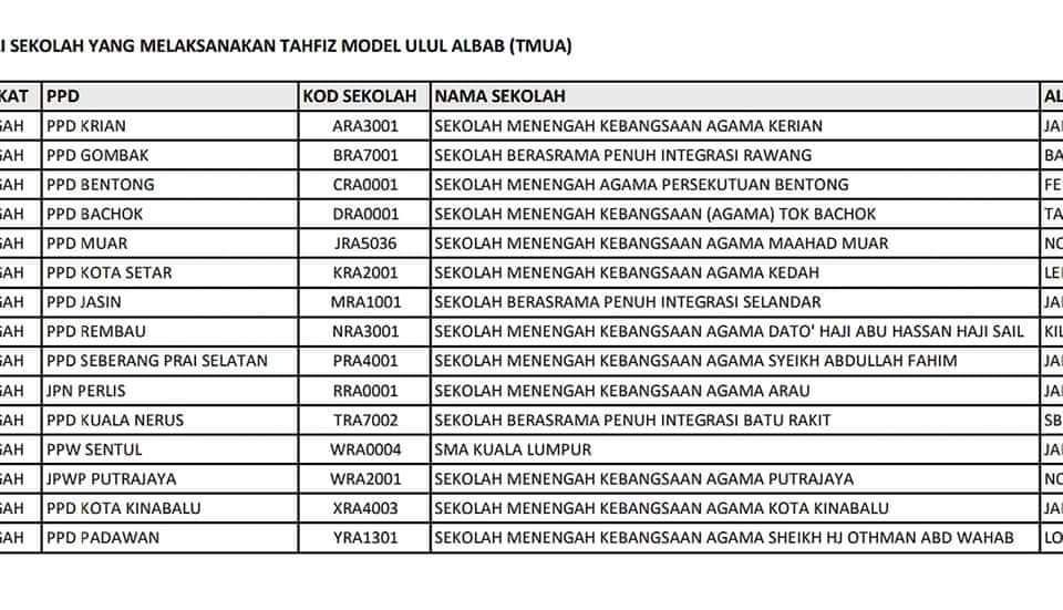 ✳TMUA Tahfiz Model Ulul Albab / Kurikulum Bersepadu Tahfiz (KBT) PT3 2016 first batch di bawah KPM. Ada 3 : SMKA KL, SMKA Kedah & SMAP Bentong [F1 2014, PT3 2016 & SPM 2018]
