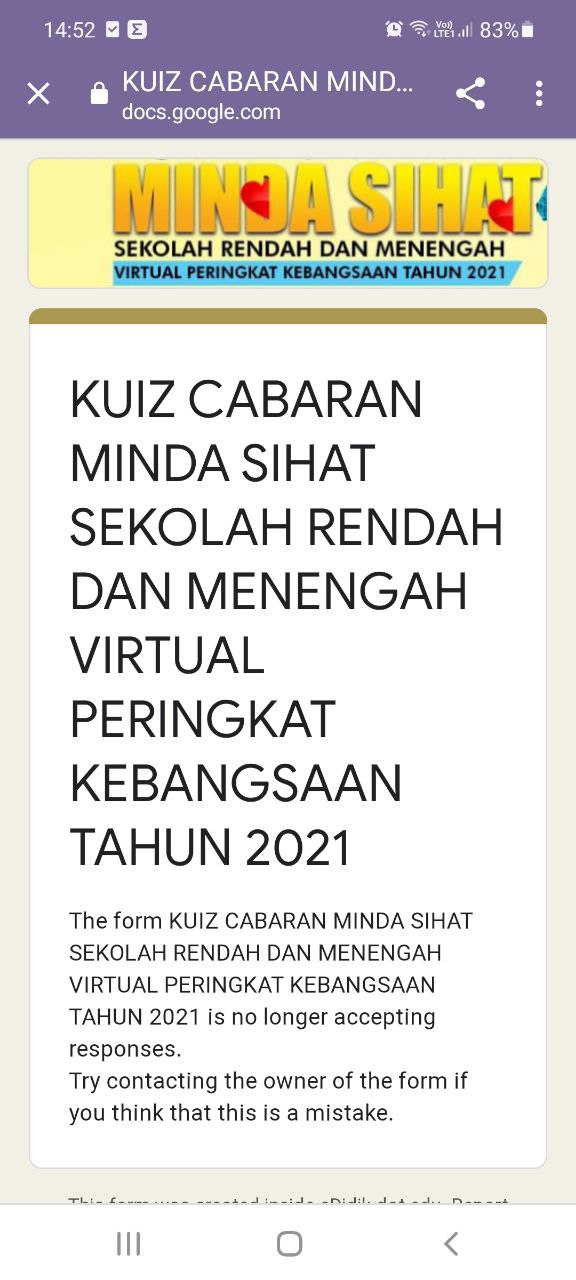 🇲🇾 makluman yg baru terima berkaitan Kuiz Minda Sihat peringkat kebangsaan