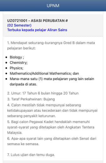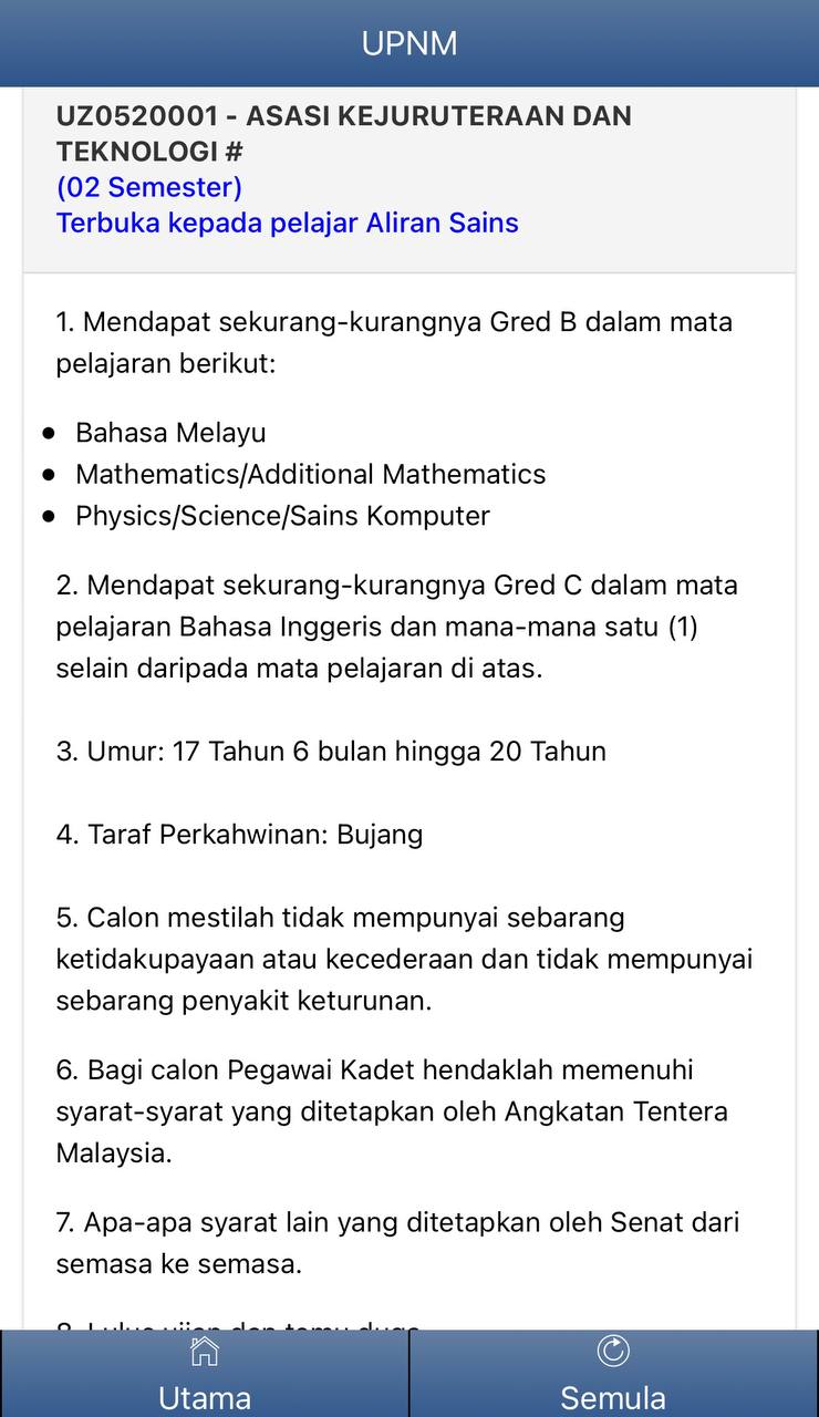 MTD hanya utk F4 dan F5. Sesiapa juga selepas SPM, boleh memohon utk masuk ke Universiti Pertahanan Nasional M'sia UPNM. Selepas asasi setahun boleh teruskan pengajian di UPNM dengan ditaja oleh Mindef iaitu melalui Akademik Latihan Ketenteraan ALK dan akan ditauliahkan dlm ATM.