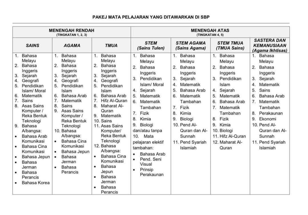 Dah tahu jenis-jenis aliran yang MRSM tawarkan…