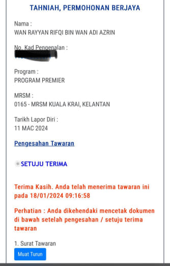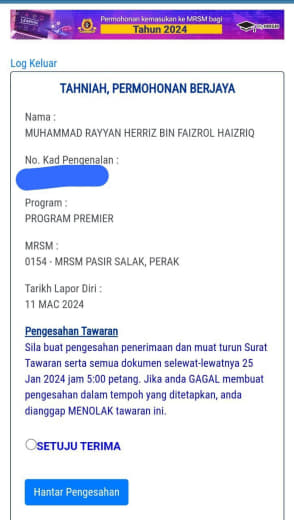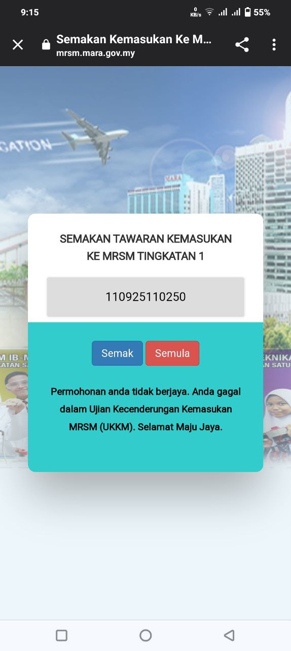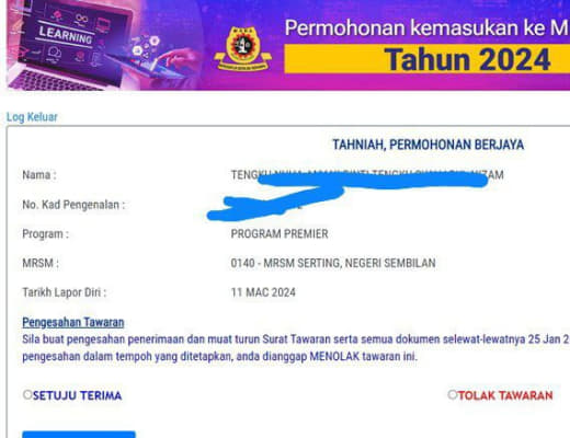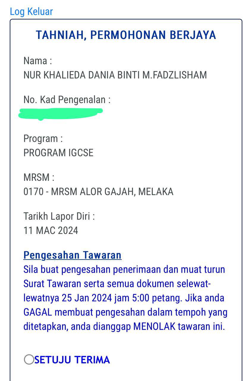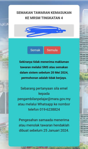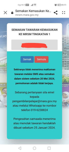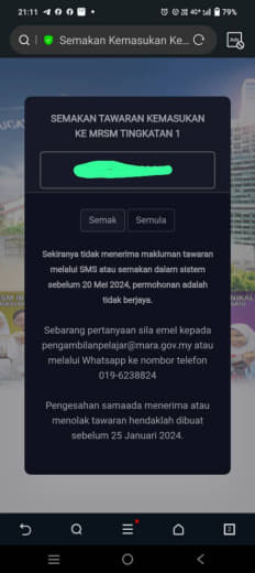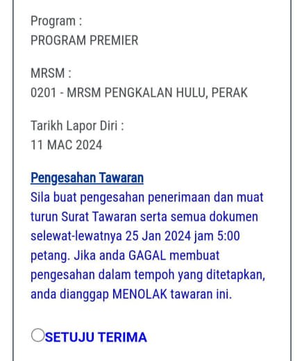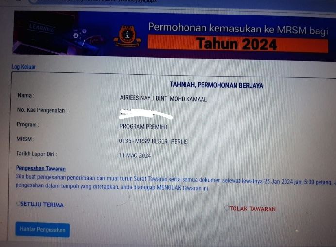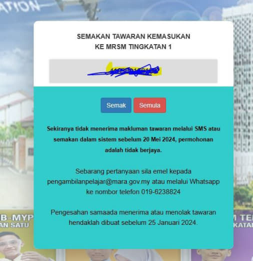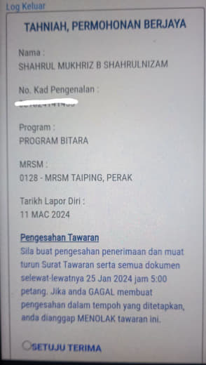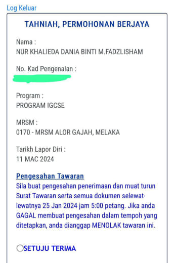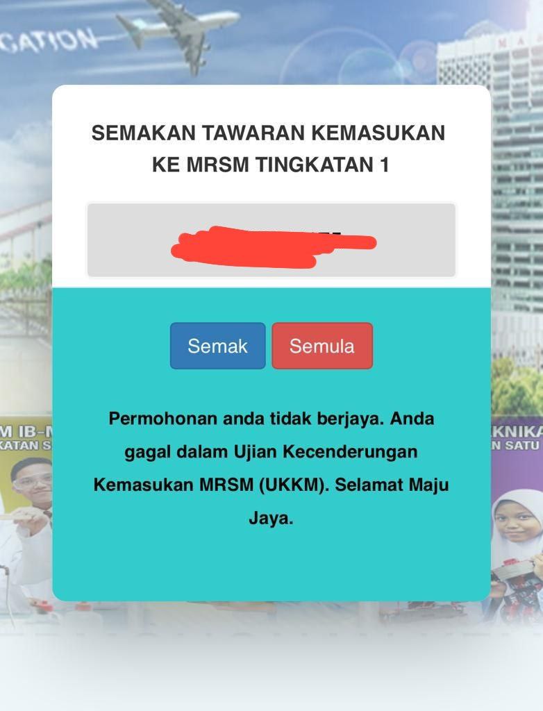 Sesiapa yang dapat status makluman seperti yang tertera, ini bermakna anak-anak pelajar lulus UKKM tetapi dimasukkan dalam senarai menunggu.