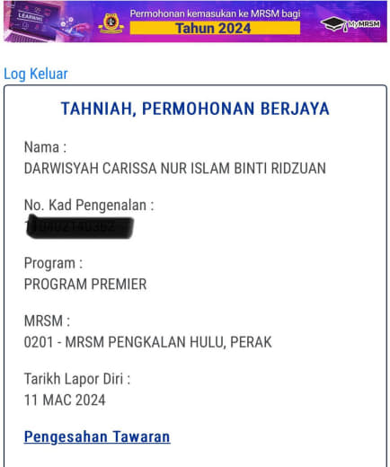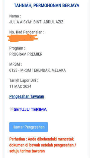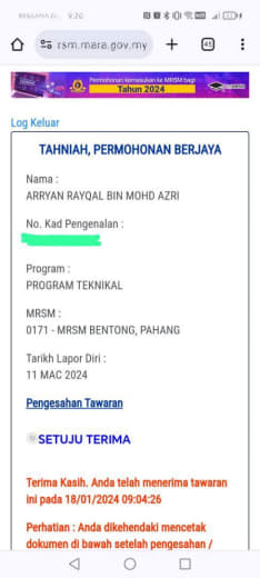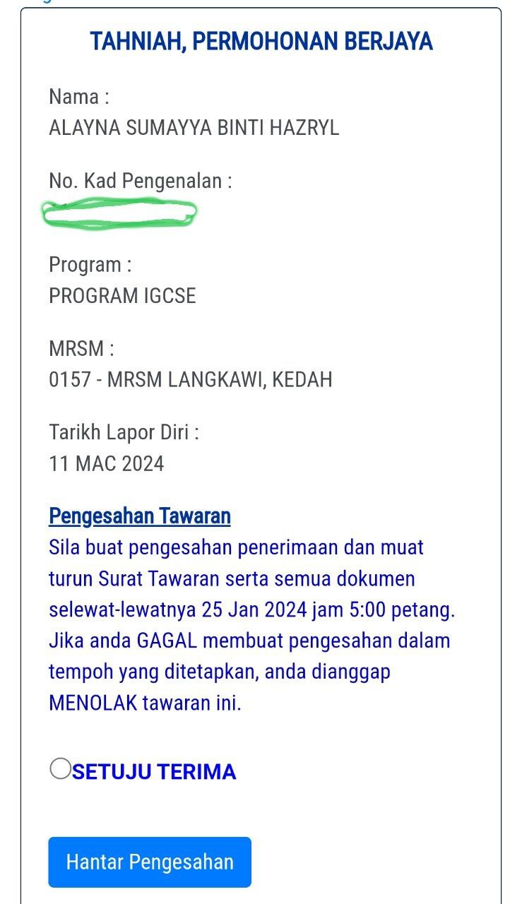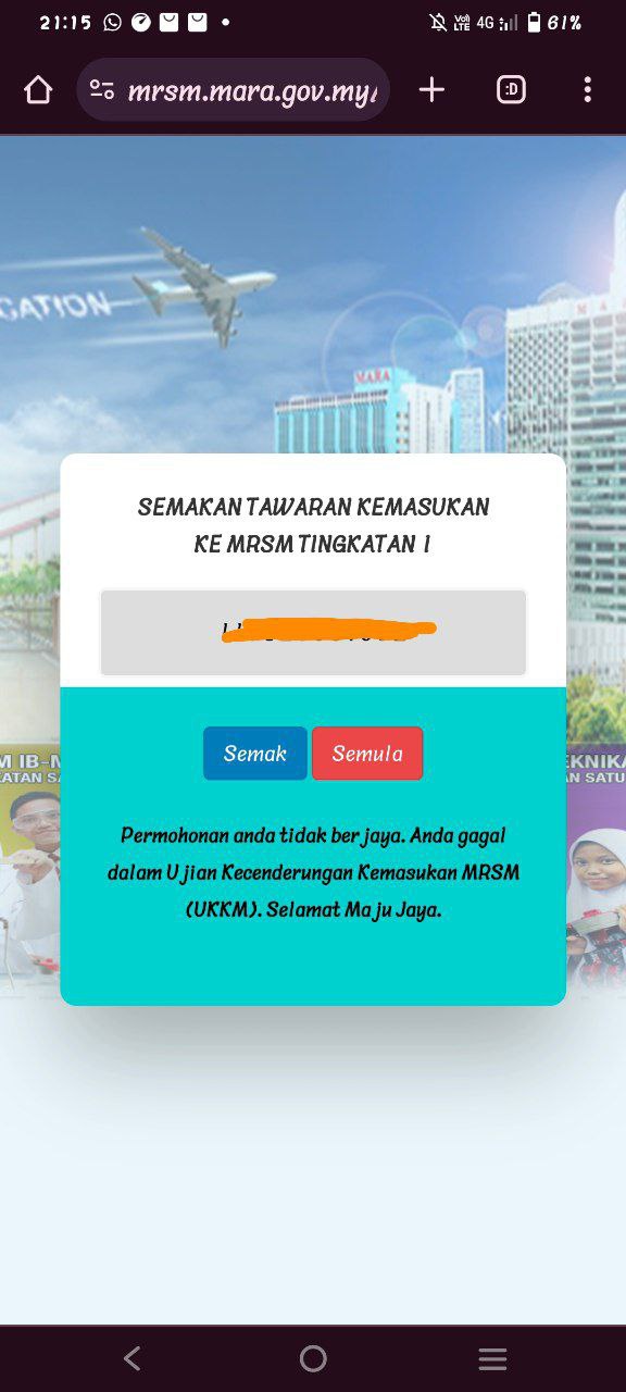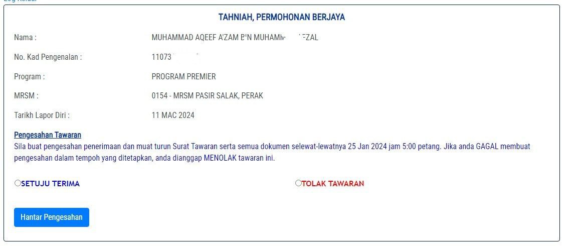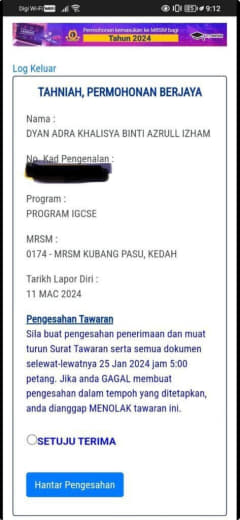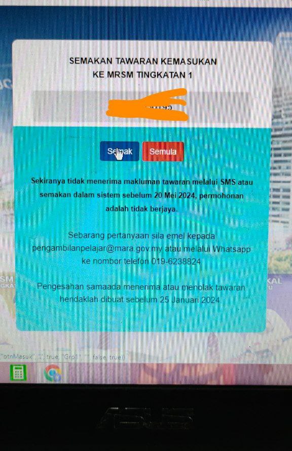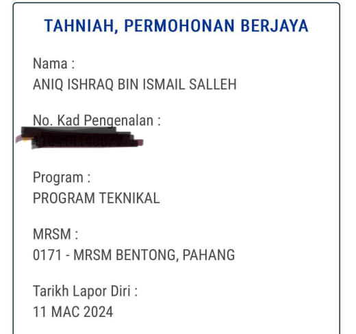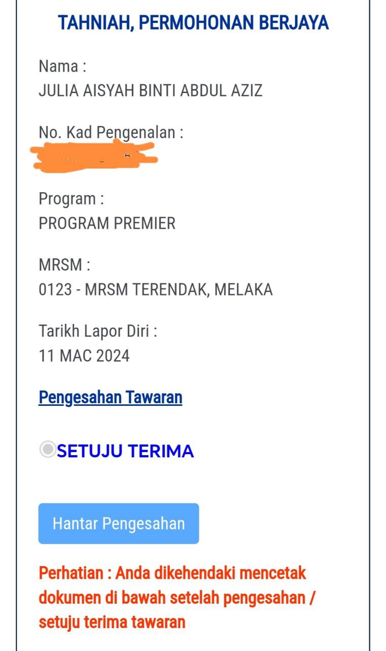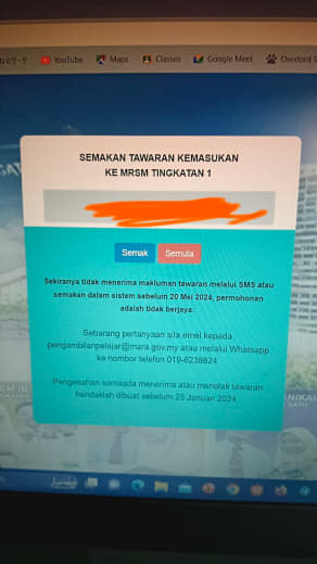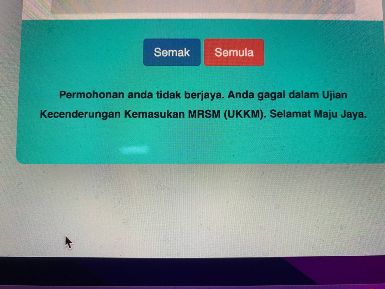 Sesiapa yang dapat status makluman seperti yang tertera, ini bermakna anak-anak pelajar lulus UKKM tetapi dimasukkan dalam senarai menunggu.