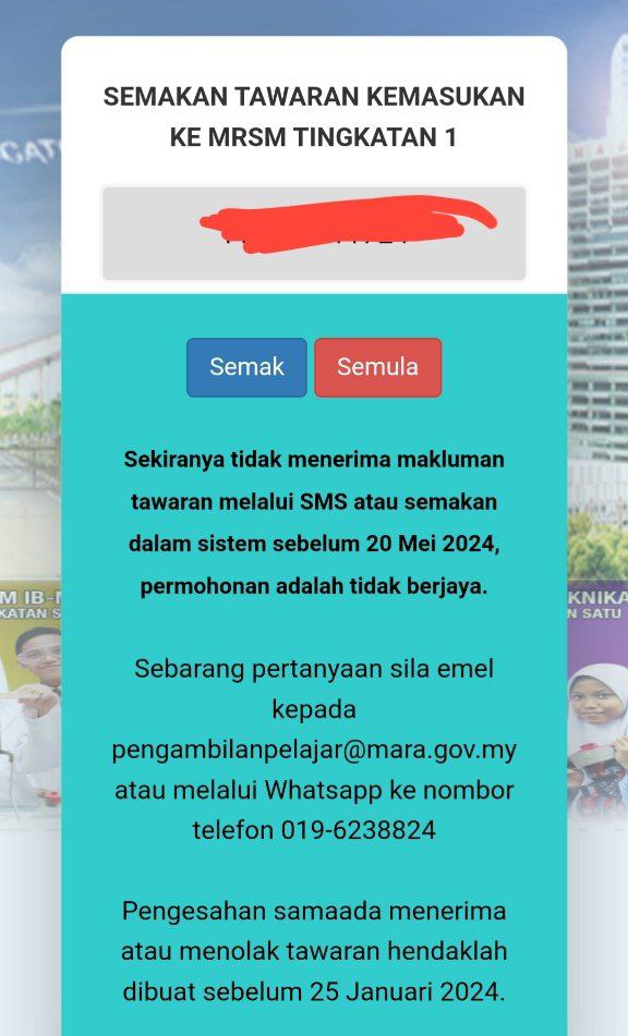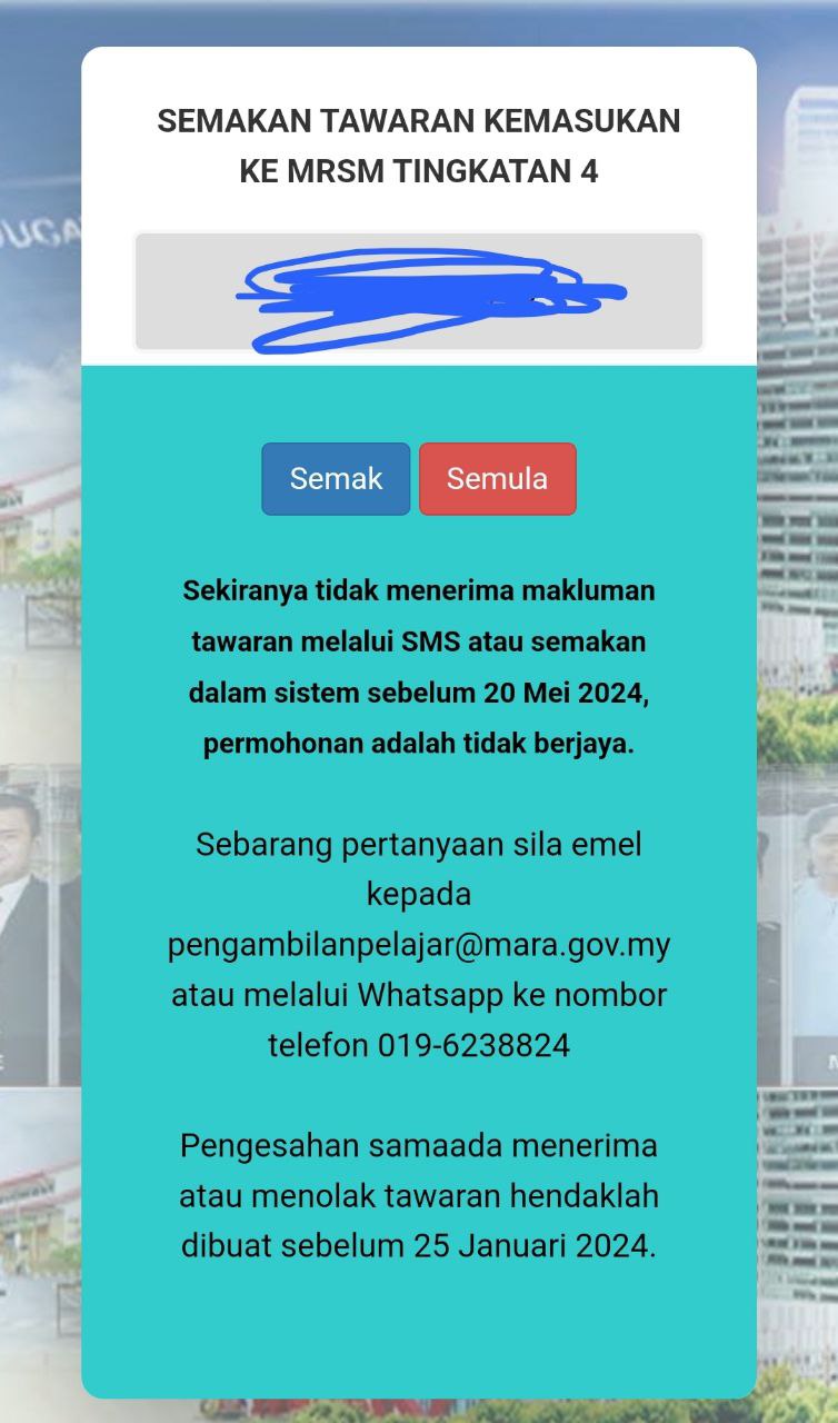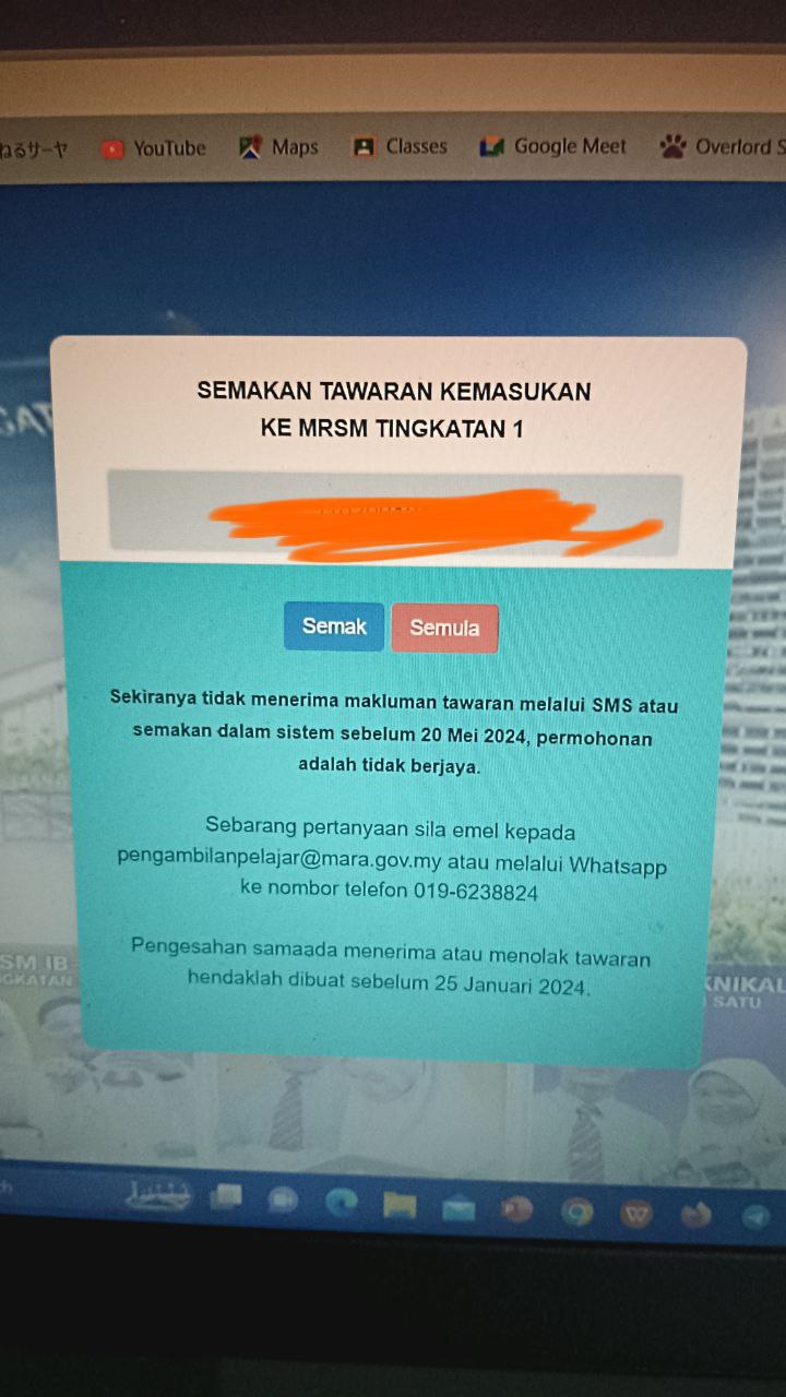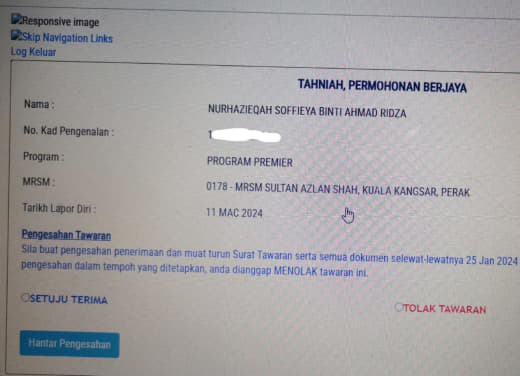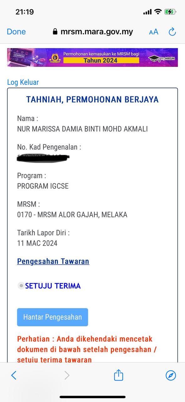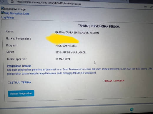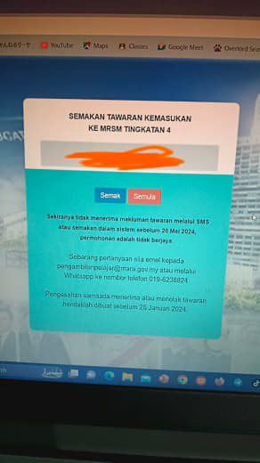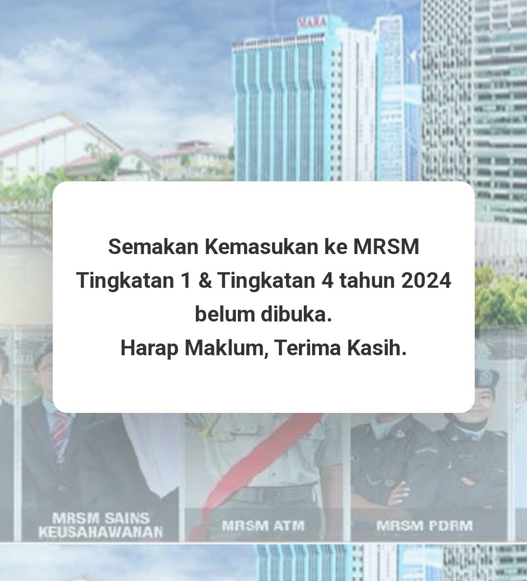 Sesiapa yang dapat status makluman seperti yang tertera, ini bermakna anak-anak pelajar lulus UKKM tetapi dimasukkan dalam senarai menunggu.