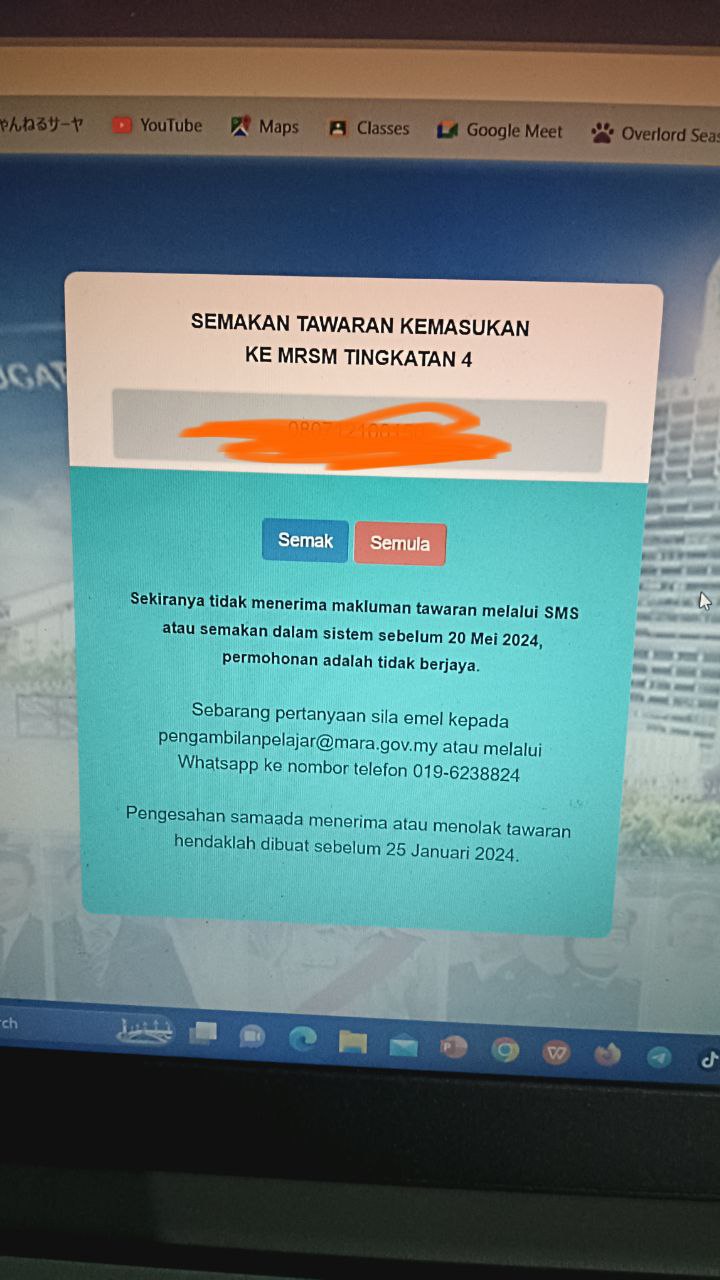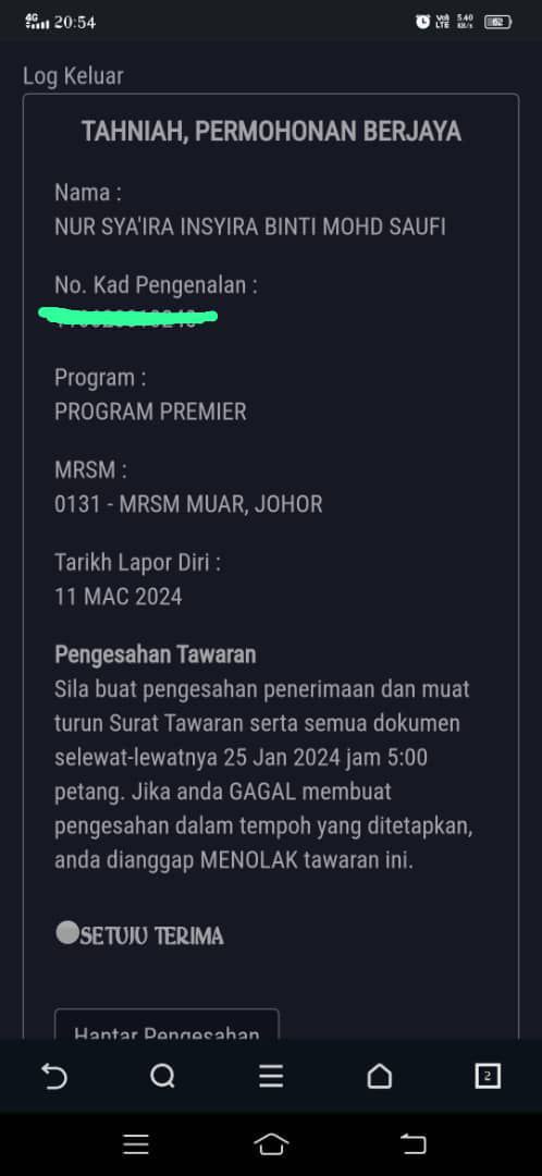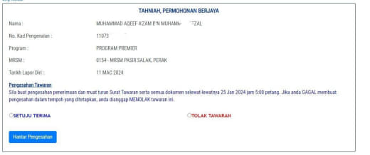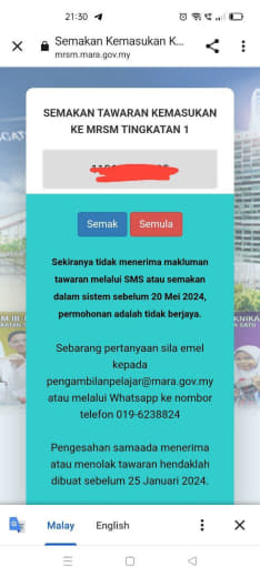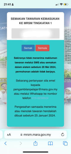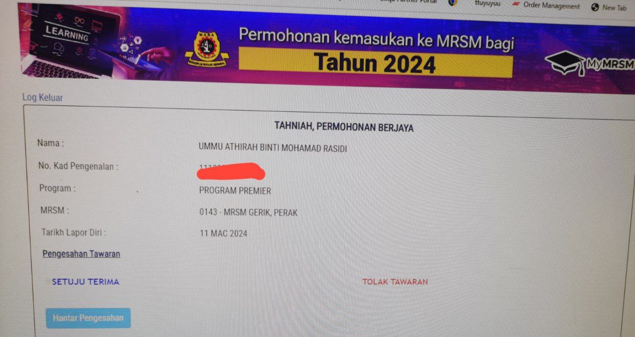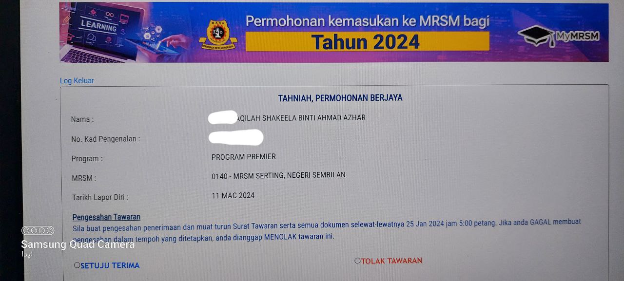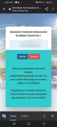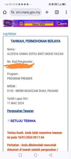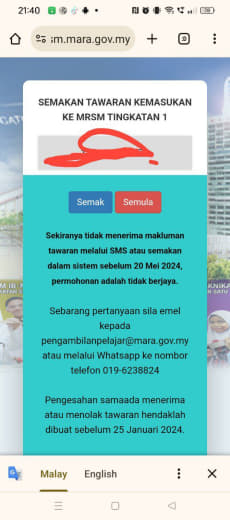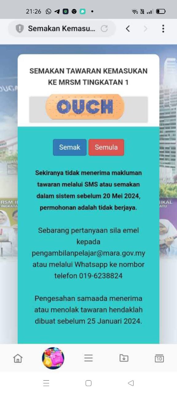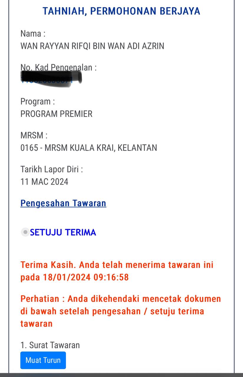 Sesiapa yang dapat status makluman seperti yang tertera, ini bermakna anak-anak pelajar lulus UKKM tetapi dimasukkan dalam senarai menunggu.