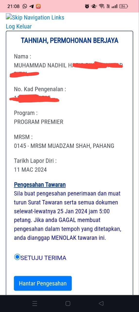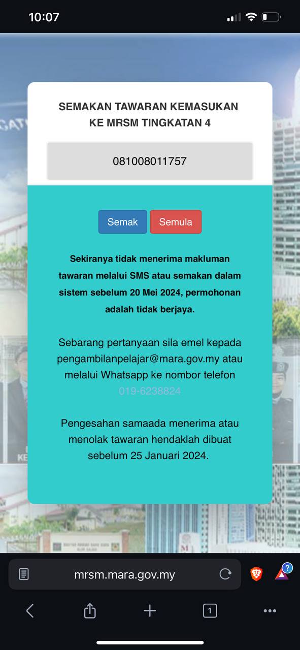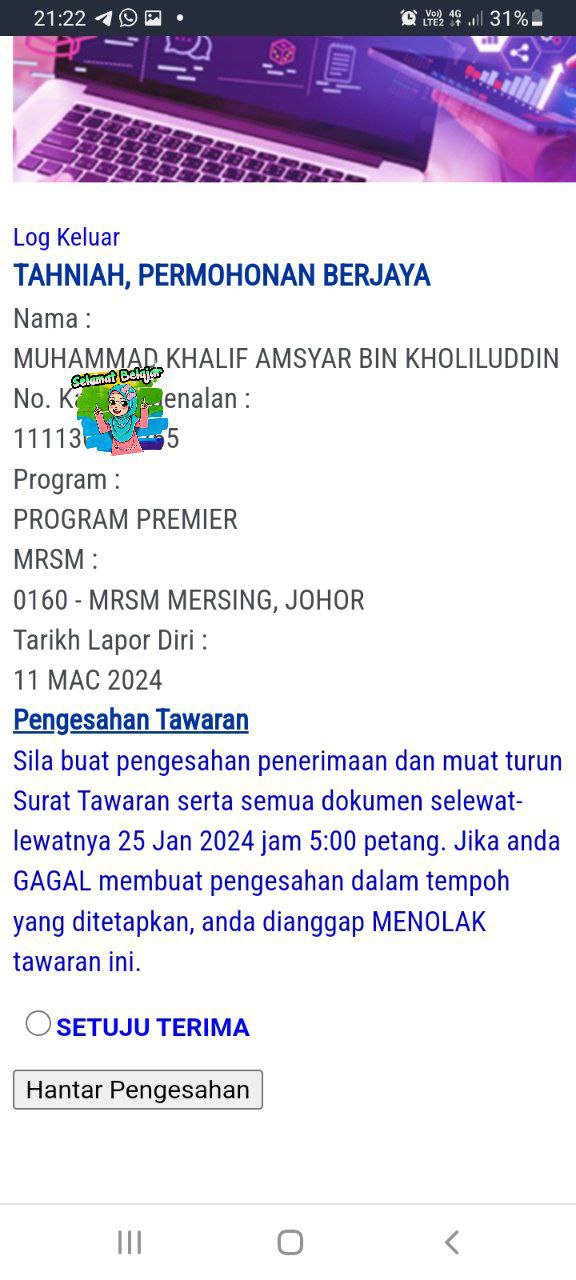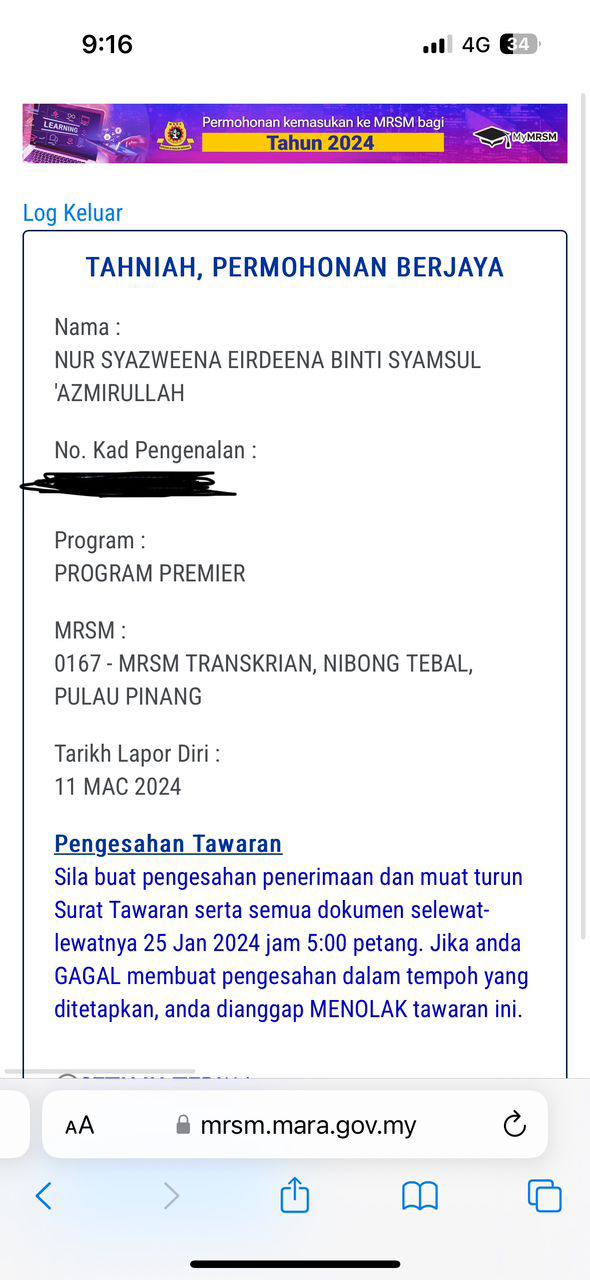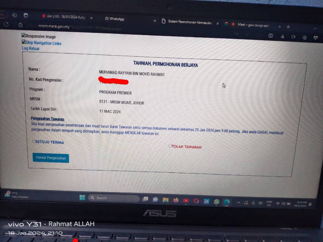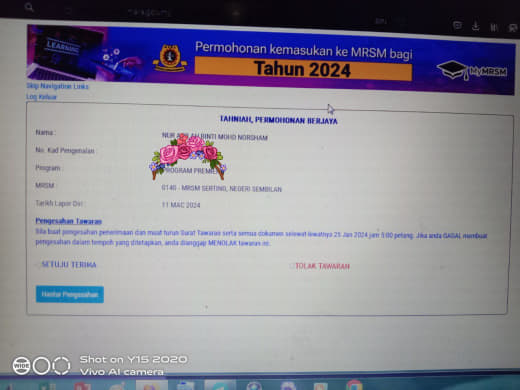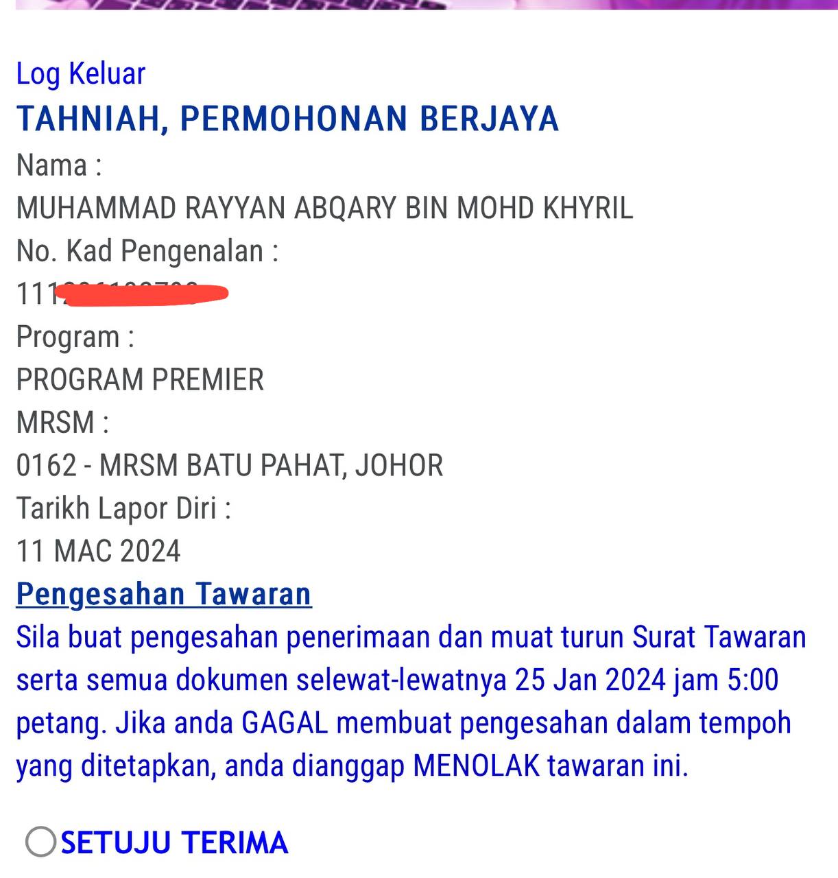 Sesiapa yang dapat status makluman seperti yang tertera, ini bermakna anak-anak pelajar lulus UKKM tetapi dimasukkan dalam senarai menunggu.