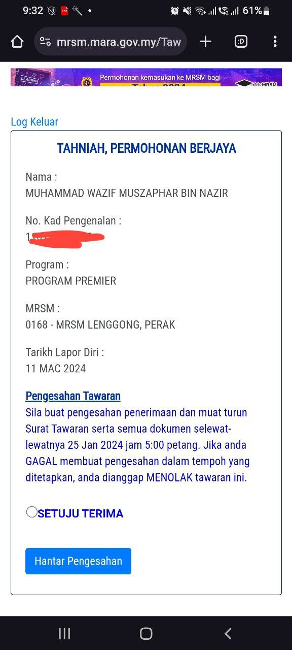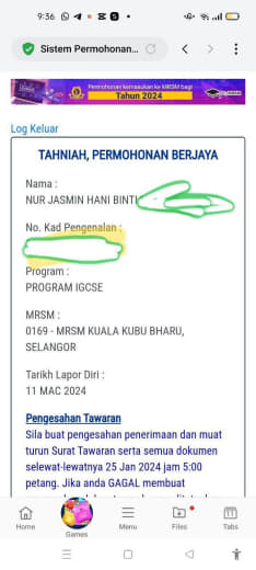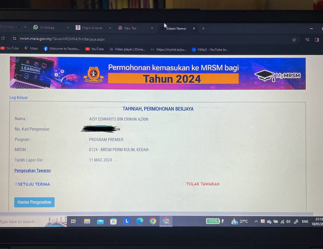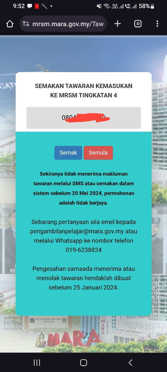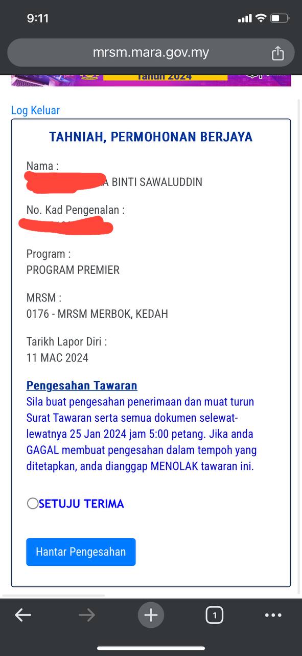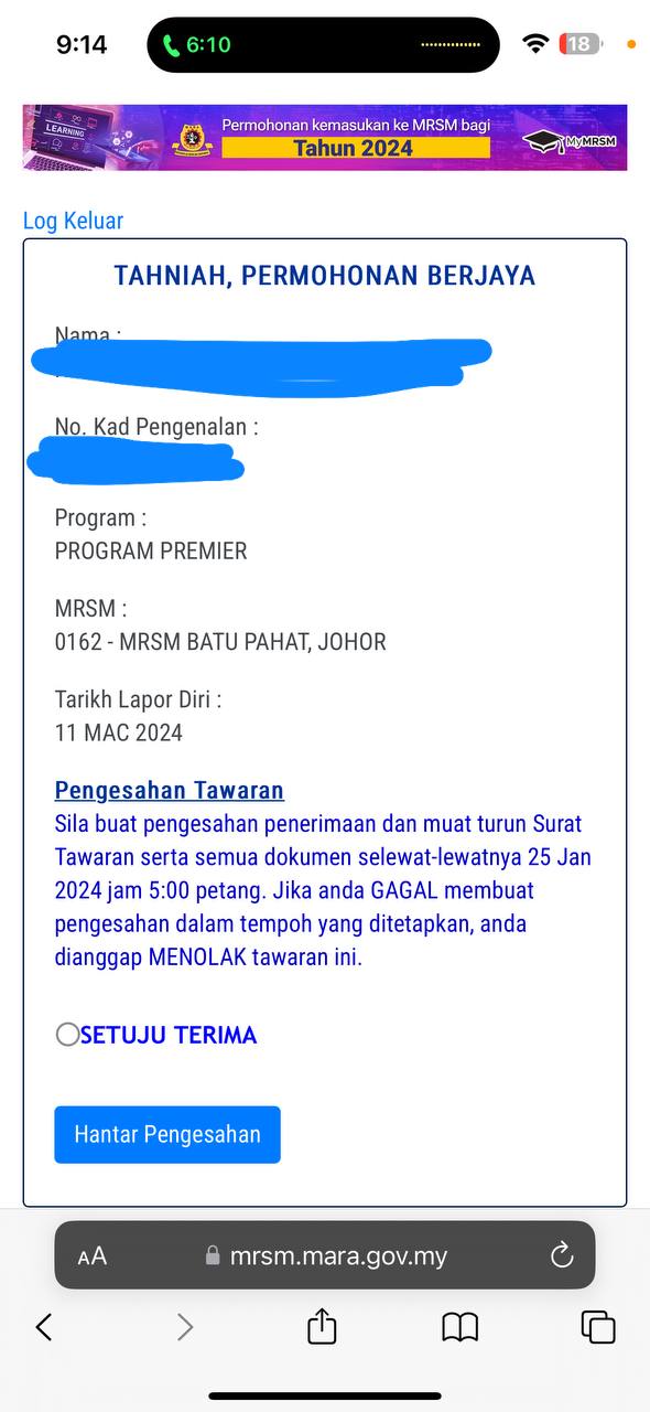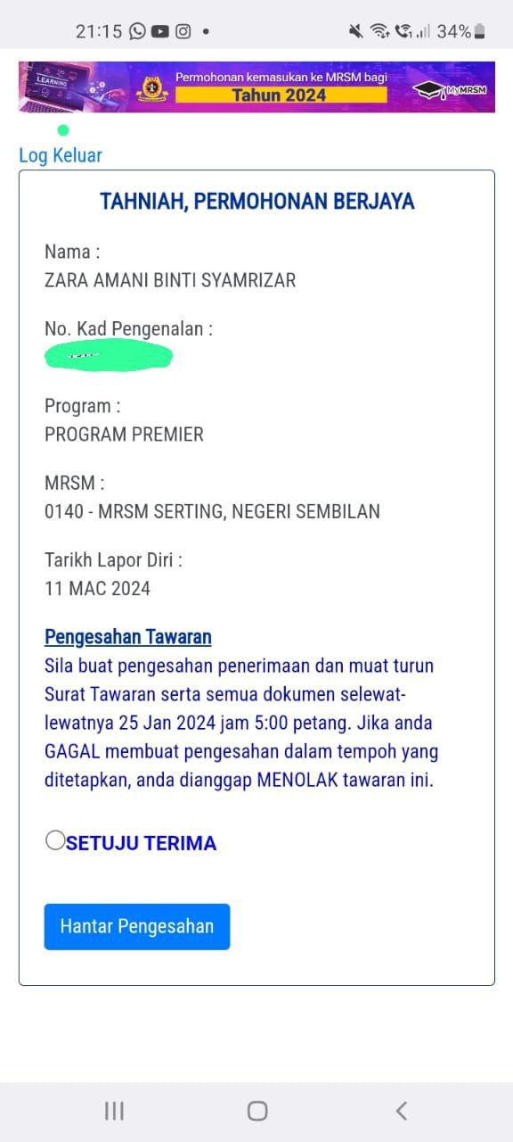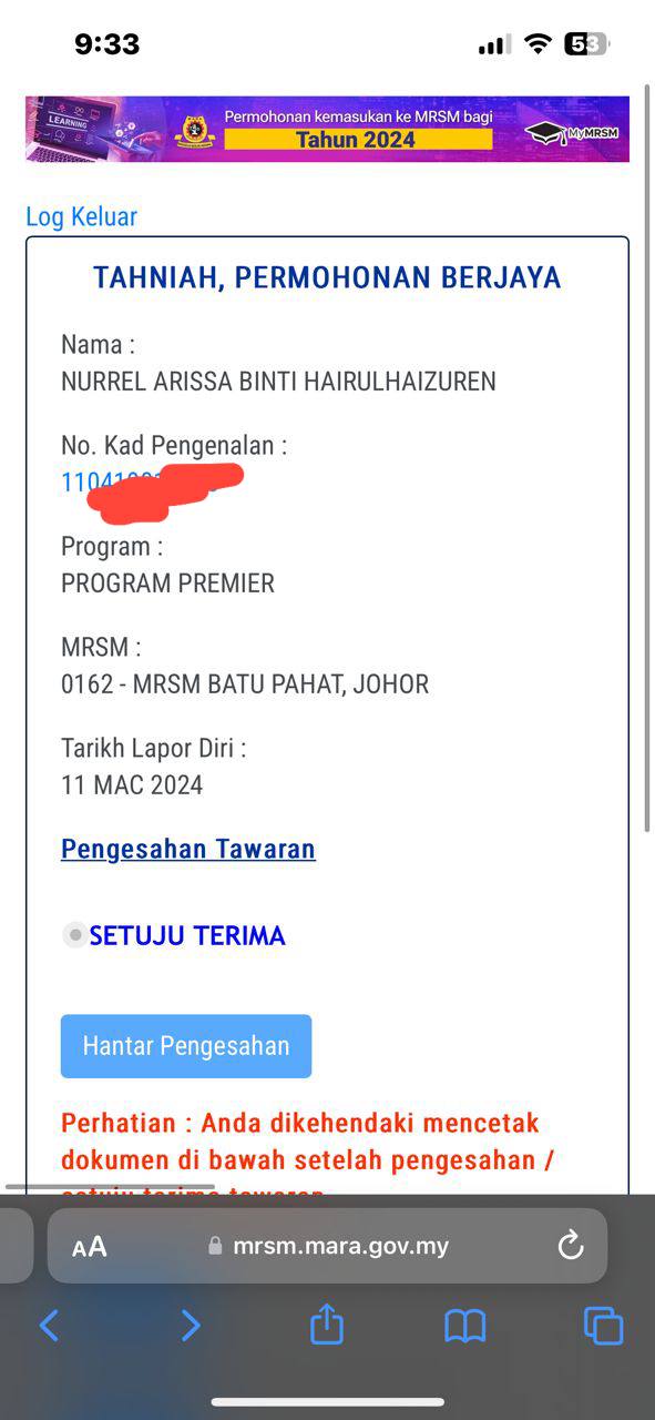 Sesiapa yang dapat status makluman seperti yang tertera, ini bermakna anak-anak pelajar lulus UKKM tetapi dimasukkan dalam senarai menunggu.