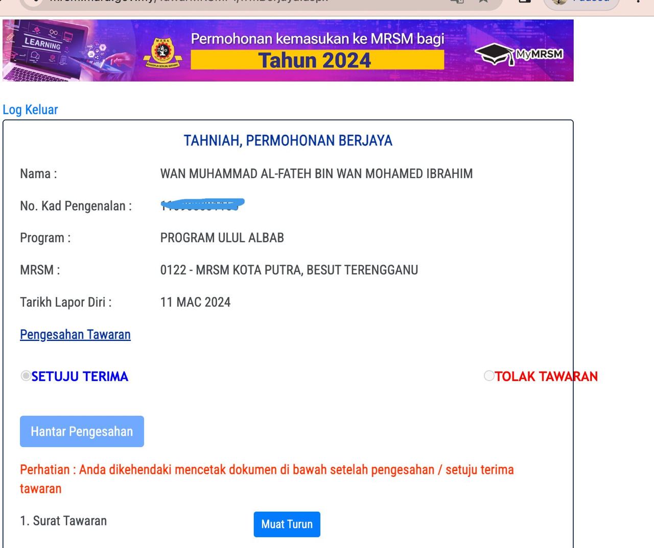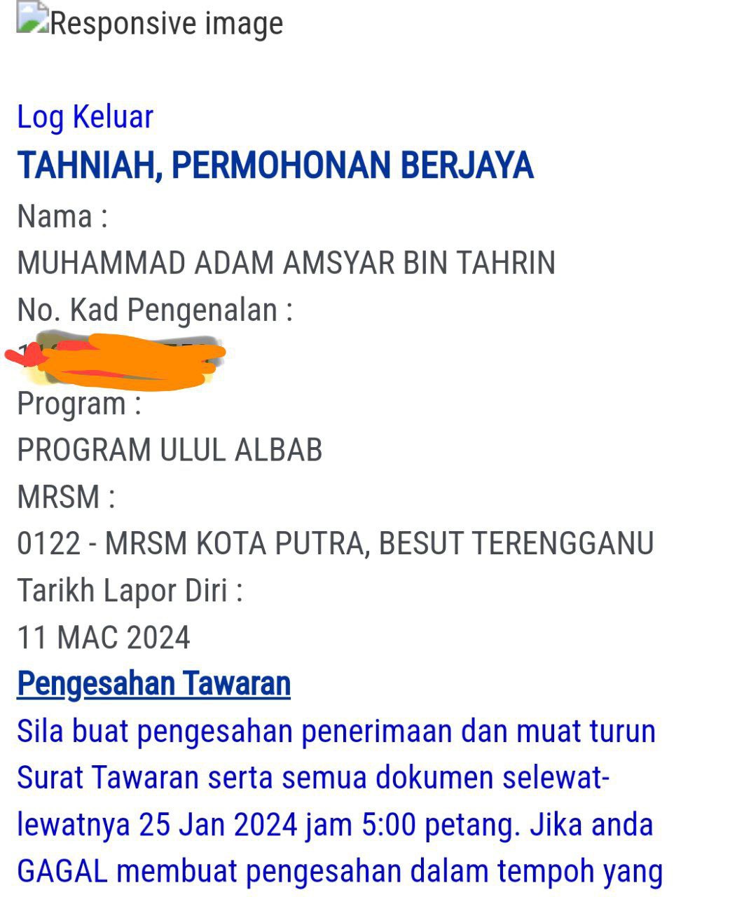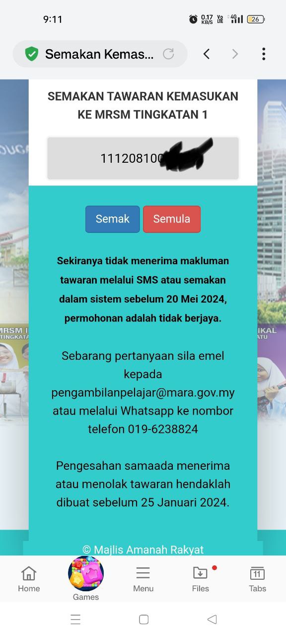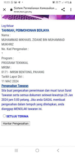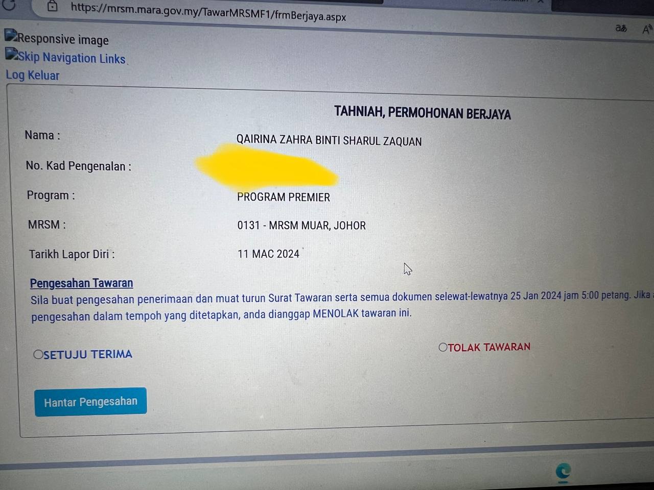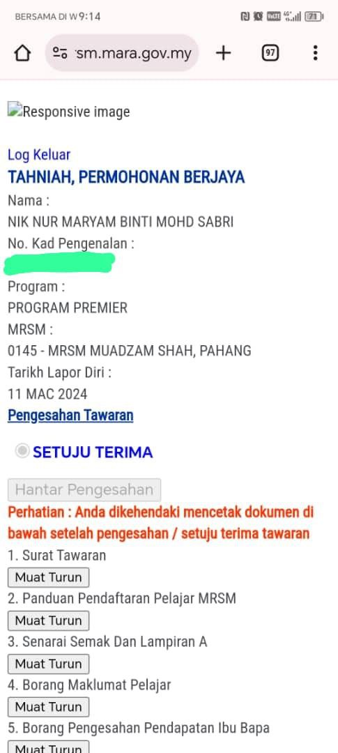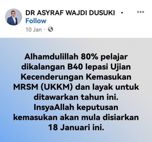 Sesiapa yang dapat status makluman seperti yang tertera, ini bermakna anak-anak pelajar lulus UKKM tetapi dimasukkan dalam senarai menunggu.