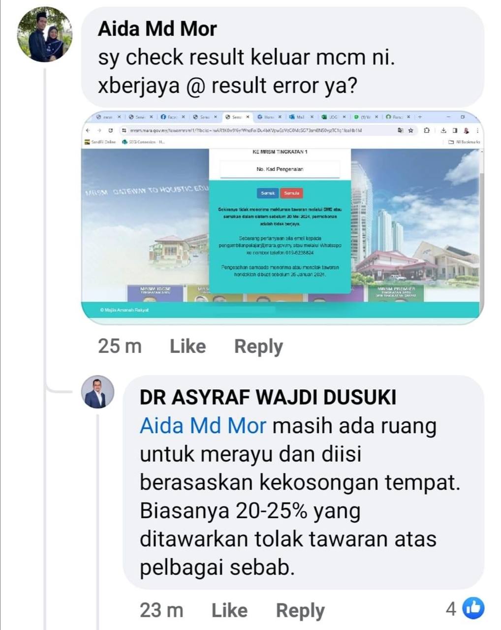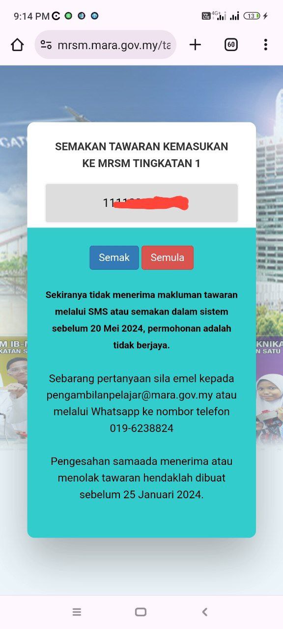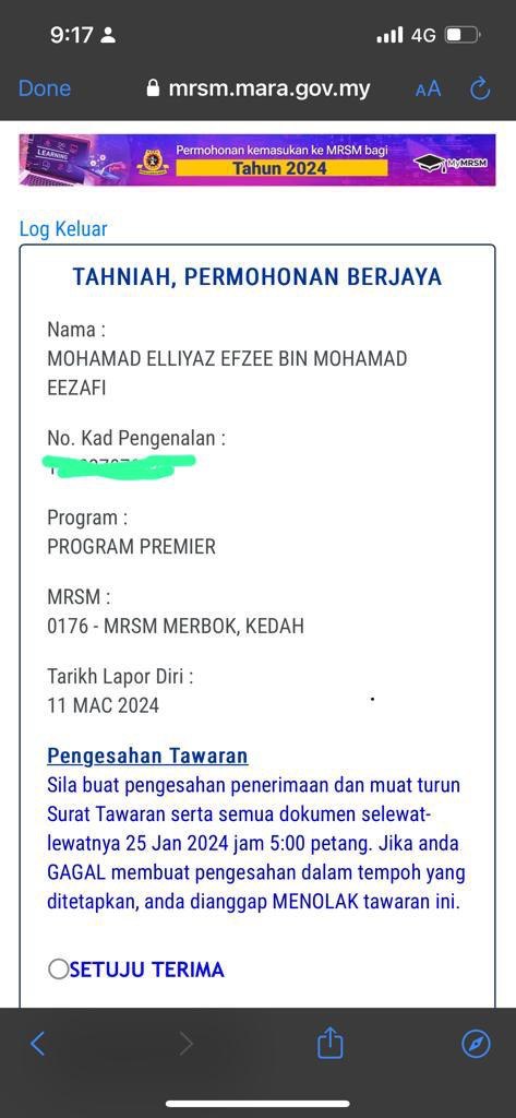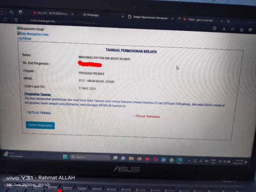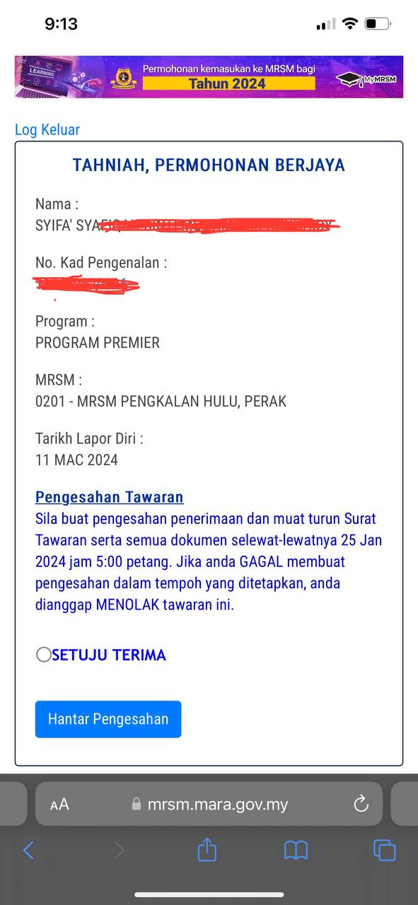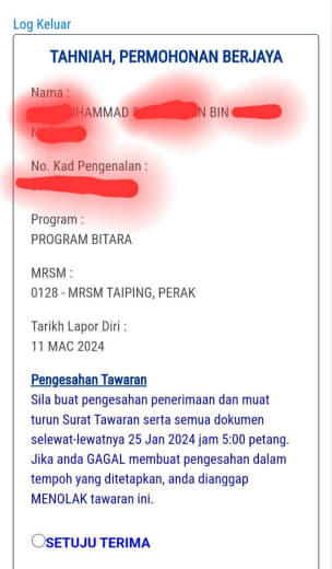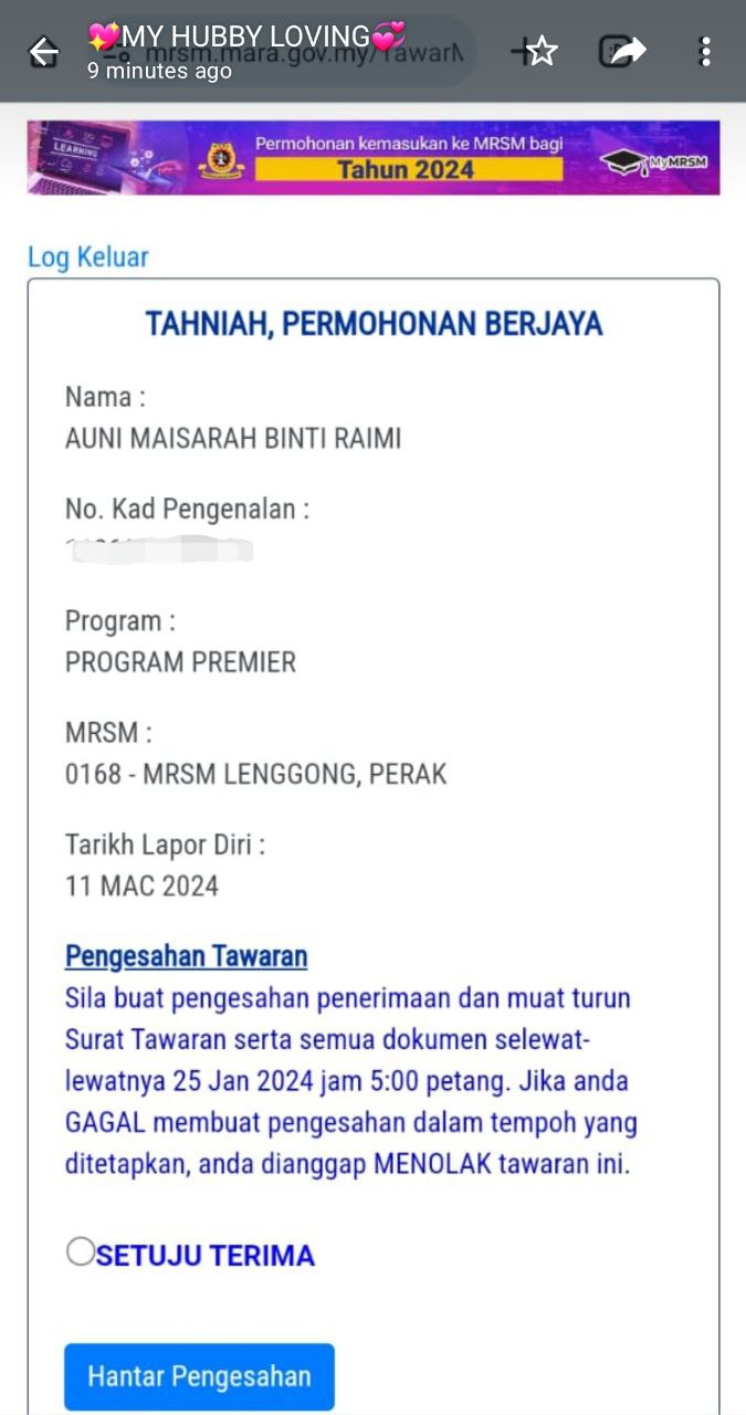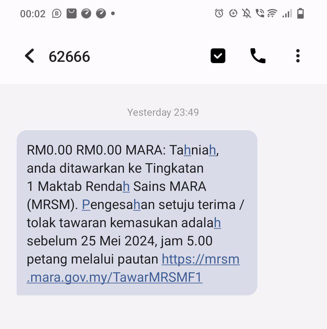 Ramai yang mesej bertanya mengenai status yang diterima seperti ini.