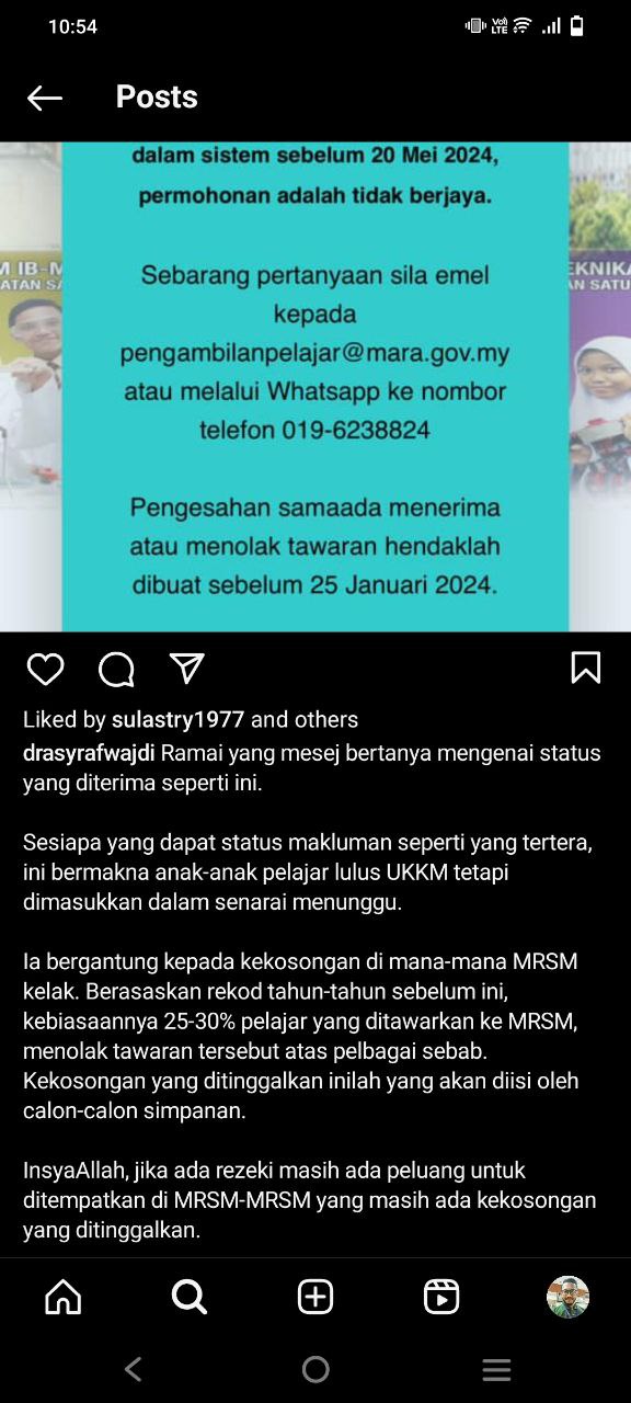 InsyaAllah, jika ada rezeki masih ada peluang untuk ditempatkan di MRSM-MRSM yang masih ada kekosongan yang ditinggalkan.