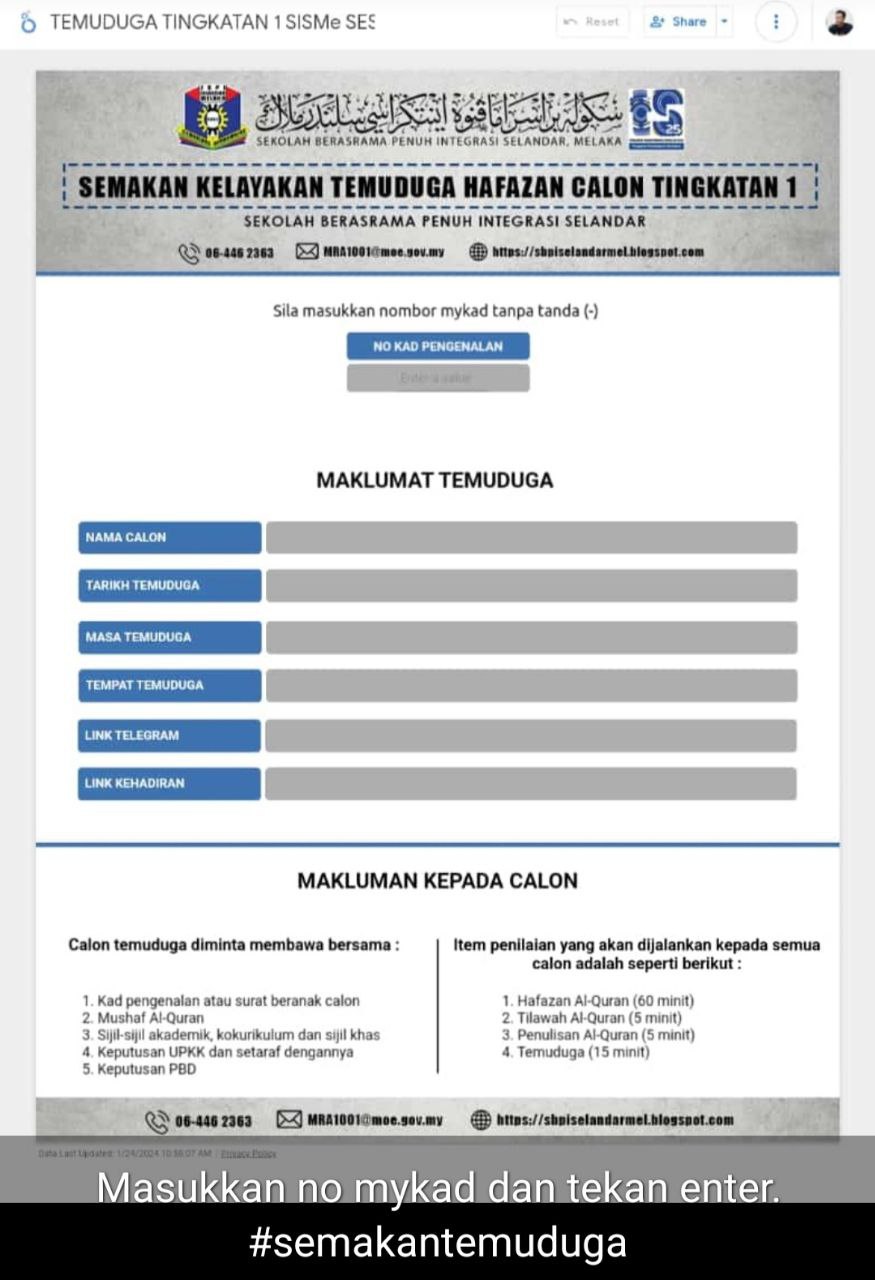 PASTIKAN ANAKΒ² DARJAH 6 bersedia awal. Ketika pendaftaran pihak SBP/MRSM telah menyediakan borang permohonan dan antara dokumen yang diperlukan ialah