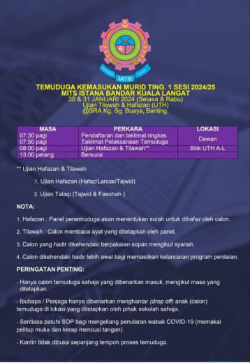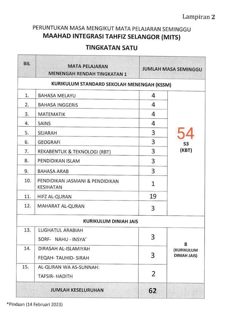 β³ MITS batch PT3 2018 ambil subjek KBD. Untuk Hafazan kurikulum MITS.