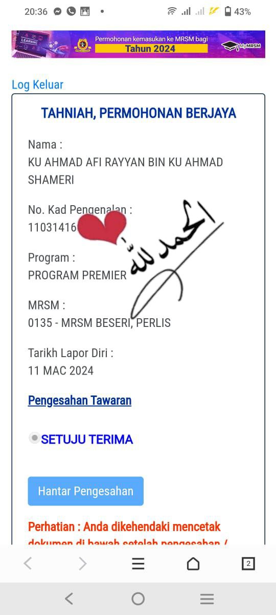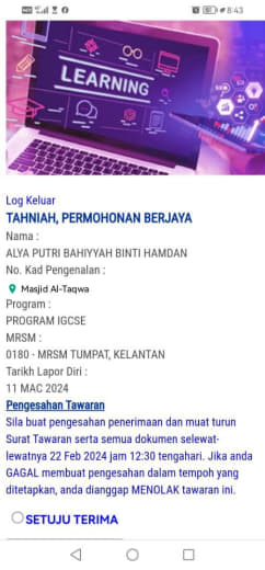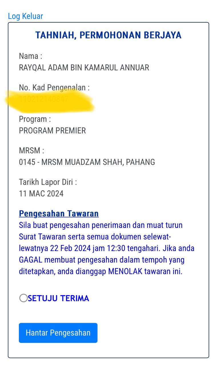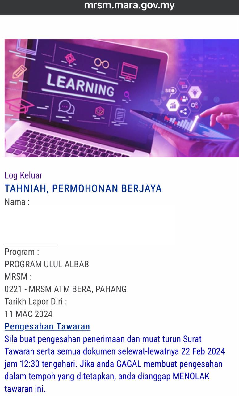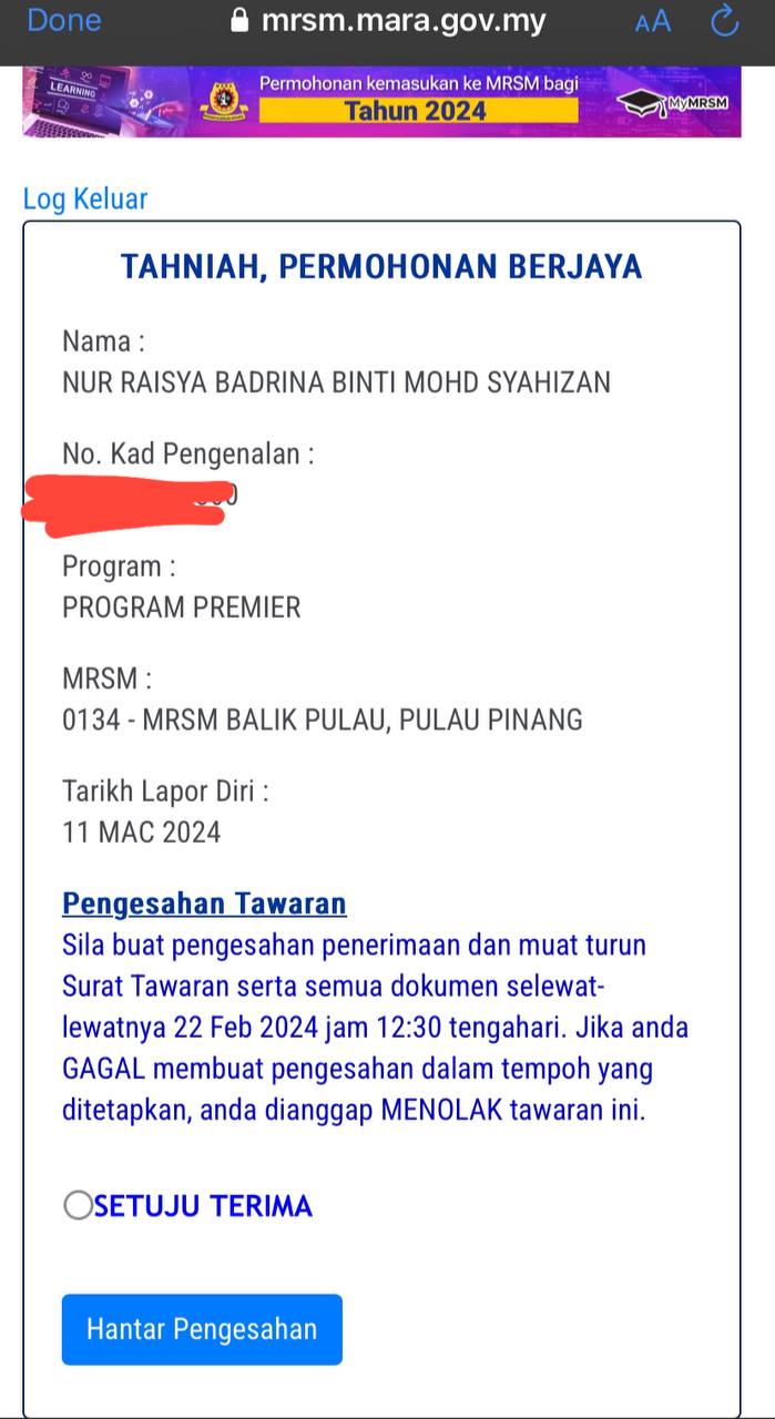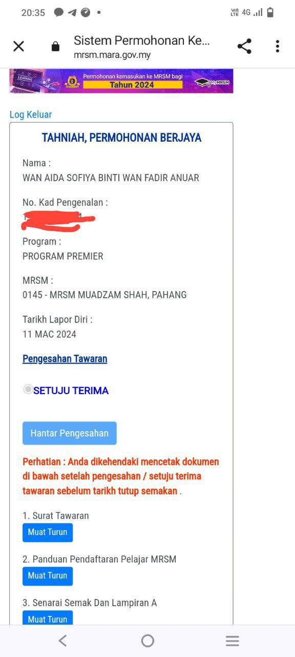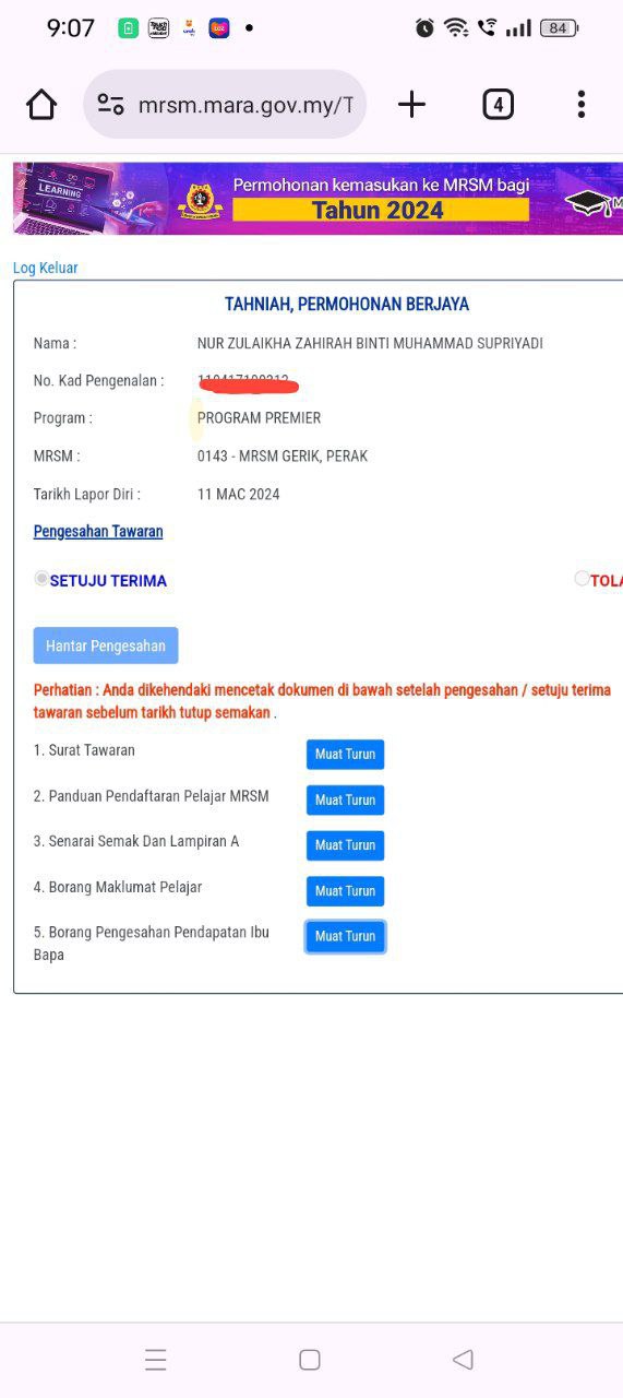 📋 1- TERIMA tawaran dan PRINT semua surat, borang dan panduan pendaftaran.