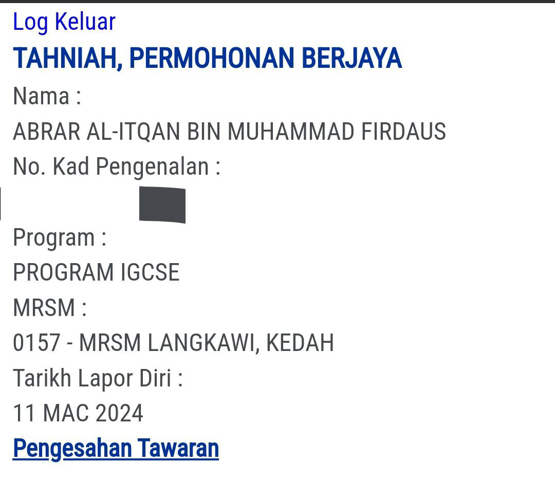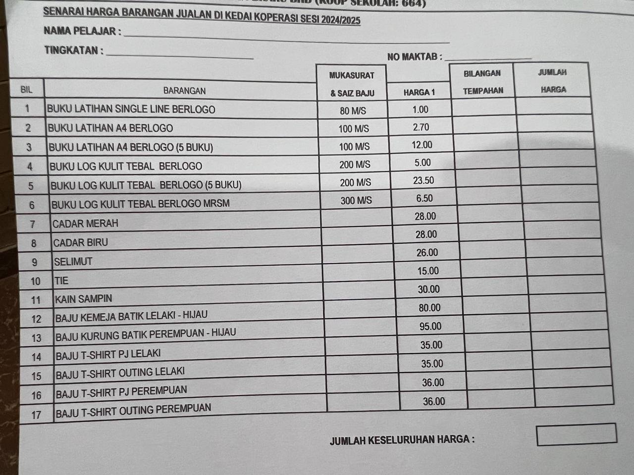 SIMPAN SEMUA RESIT BAYARAN UTK SEMAKAN AKAN DATANG. RESIT-RESIT BAYARAN NI PERLU SIMPAN ELOK2 SEHINGGA ANAK TAMAT/KELUAR DR MRSM.