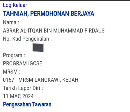 ✅Gunakan no akaun pelajar yang tertera di sudut atas kanan surat tawaran rasmi utk setiap transaksi.