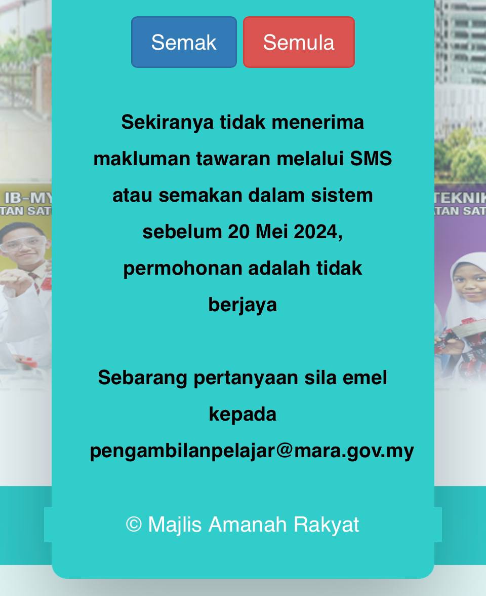 Bayar yuran pendaftaran maktab sebanyak RM161-300 (Bergantung kpd arahan surat tawaran)