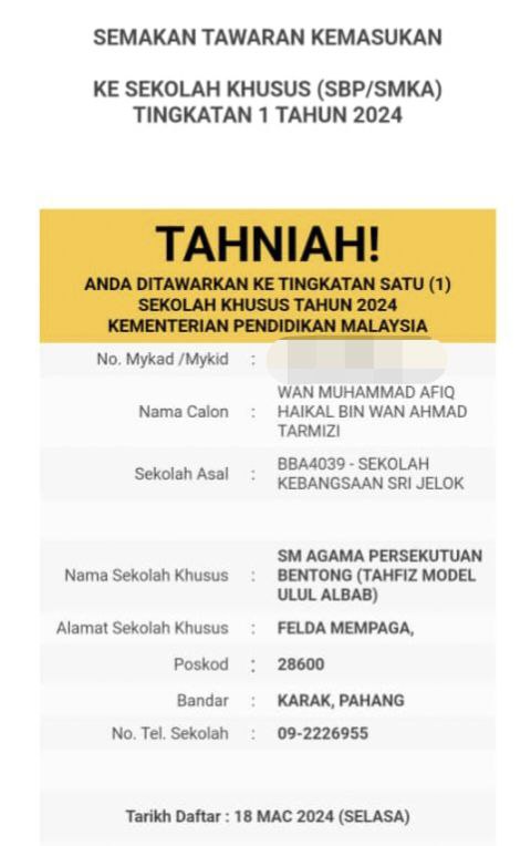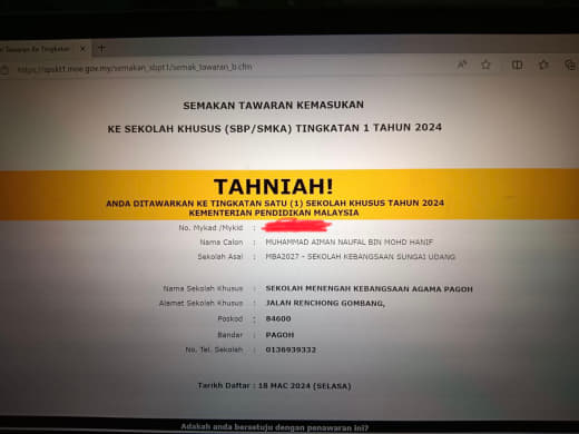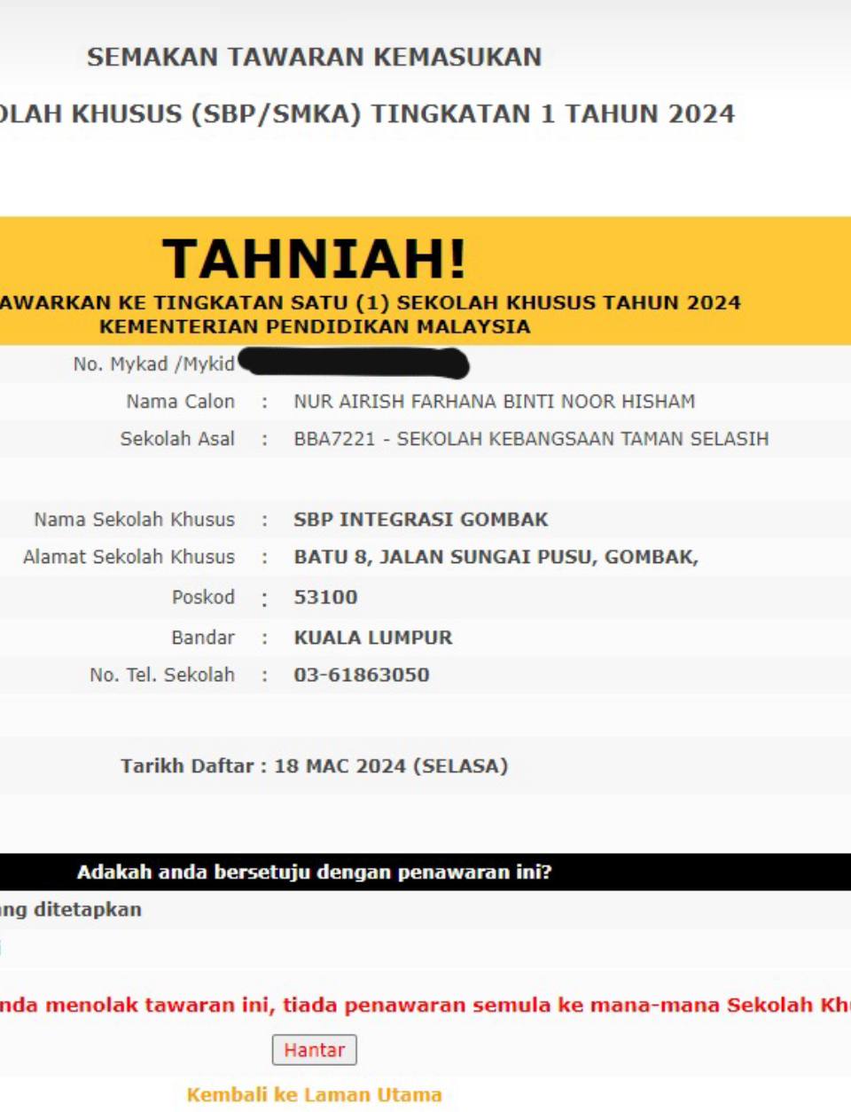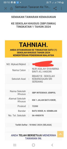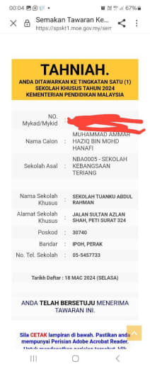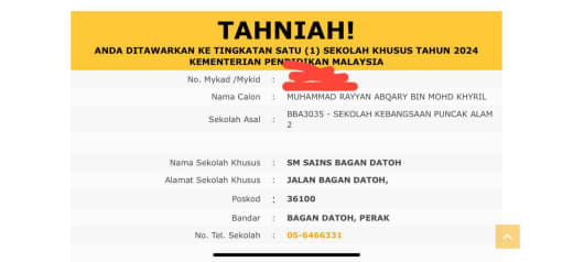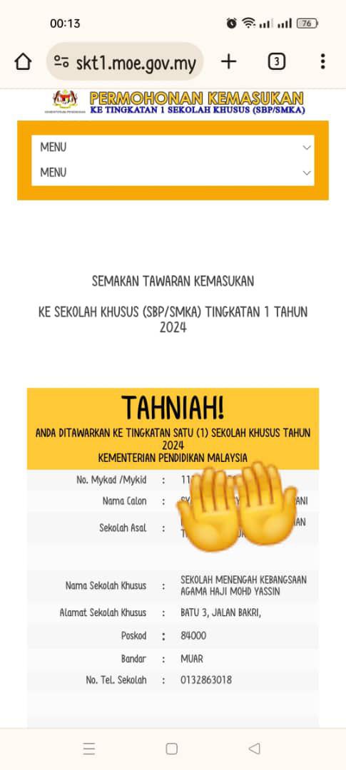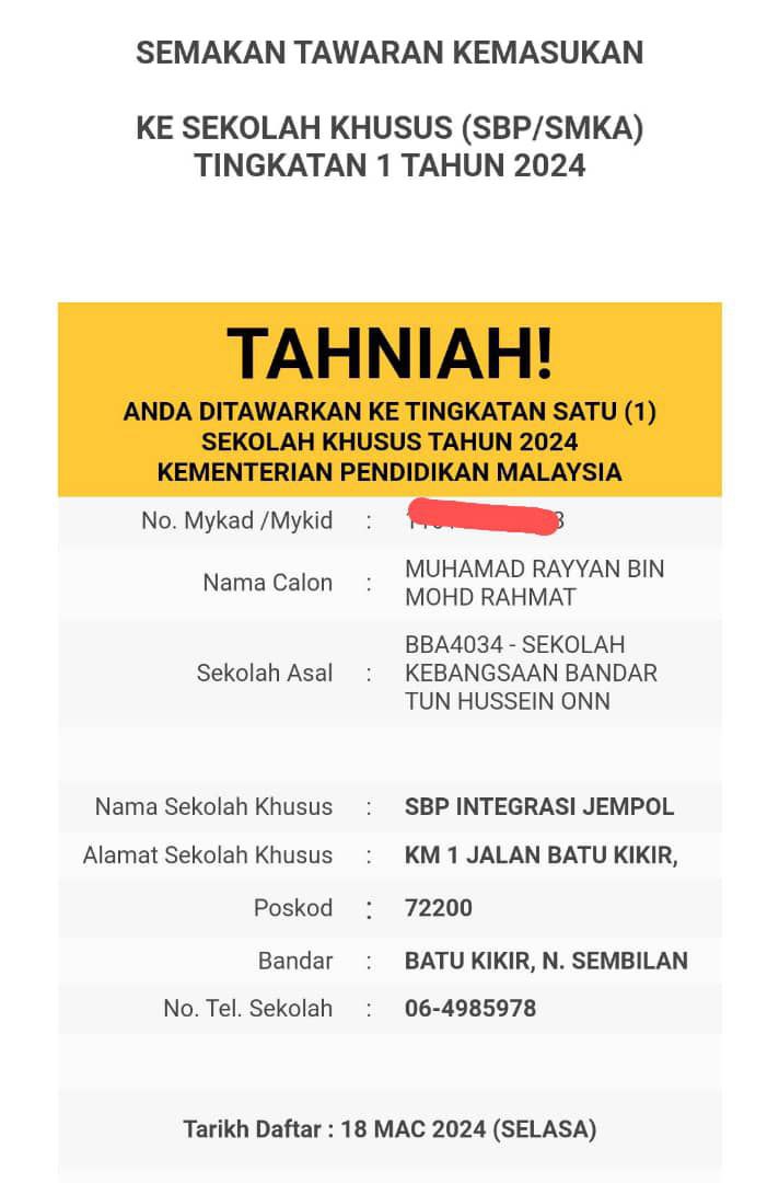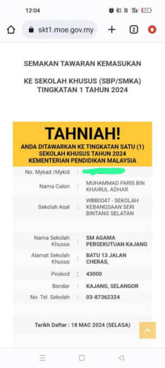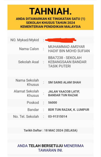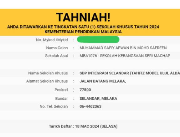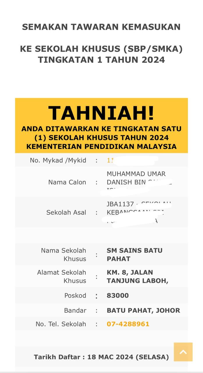 Alhamdulillah..ank sulung bujang sy Berjaya pilihan pertama dia..tksih byak2 Tn.hashim & parents2 dlm grp ni yg begitu byak share tips2 & pengalaman ank2 mereka..