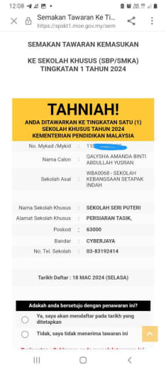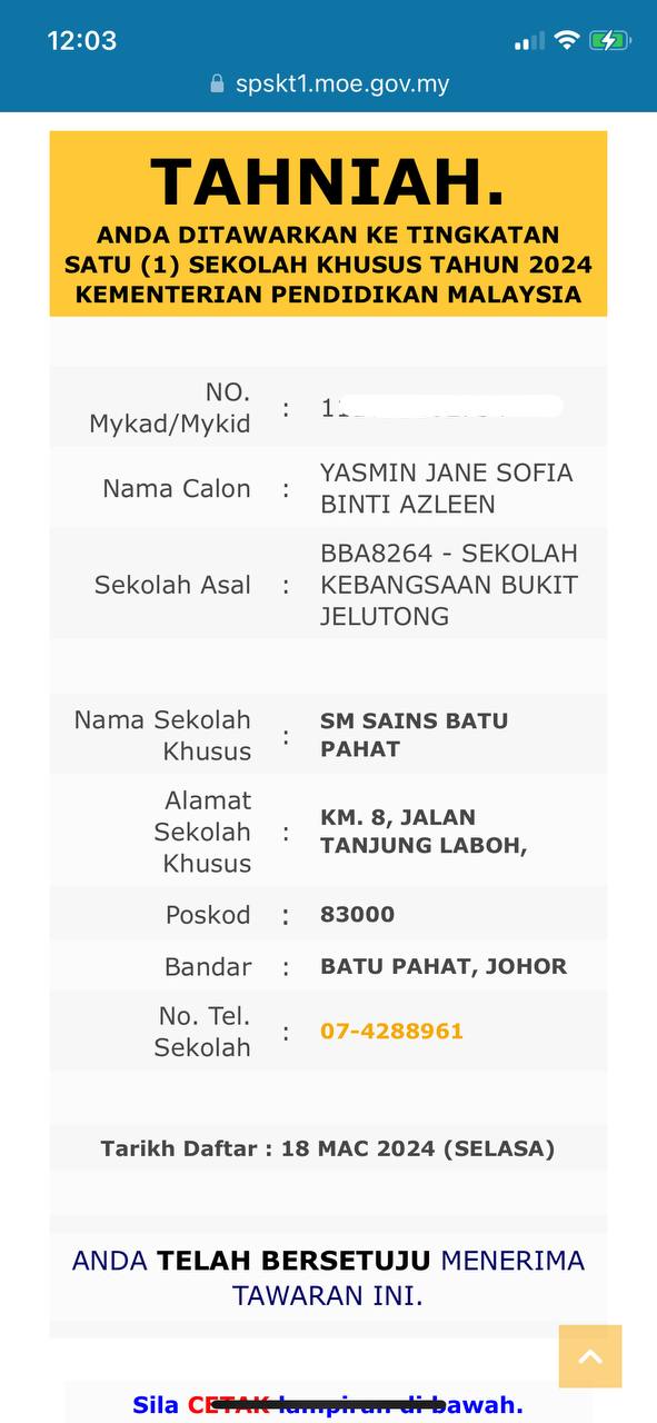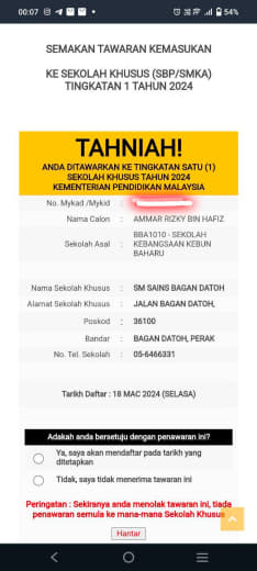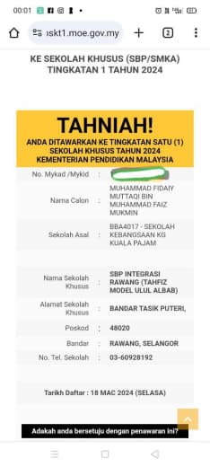 Alhamdulillah..ank sulung bujang sy Berjaya dpt pilihan pertama dia..1st time pengalaman..ibu dia pulak yg kalut..tksih tn.hashim & parents2 dlm group ni yg begitu byak share mcm2 tips & pengalaman ank2 mereka..