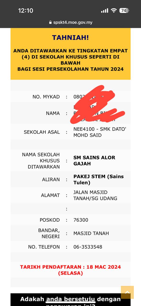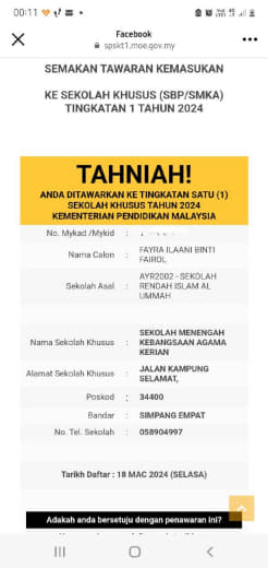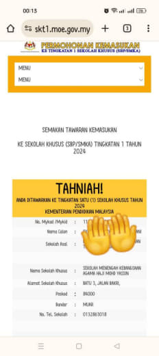 Alhamdulillah syukur dpt pilihan pertama β€οΈπ¦π» selama sy membaca sambil berdebar dgn telatah warga group (ibu bapa). Mama plk terasa sunyi, hero sy excited sgt dpt piliahan pertama SM Sains Machang, hero sorang baru form 1, nak lepaskan ke asrama dah ππ₯Ή