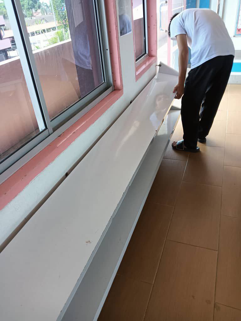 Buat kutipan duit seikhlas hati antara parents. Then, cr lah sesiapa utk baikpulih. Kalau ada di kalangan parents blh baiki, lg jimat. Mintak kebenaran dr pengurusan sek & cikgu kelas utk baikpulih kelas. Eloklah mulakan di awal sesi persekolahan ni.