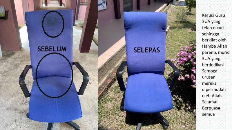 Wujudkan group parents kelas. Mulakan dgn baiki apa yg patut dlm kelas dulu, sbb tu tempat anak kita akan duduk lama. Kalau dah baiki, dan blh guna lg thn² akan datang, anggap sahajalah saham akhirat kita.