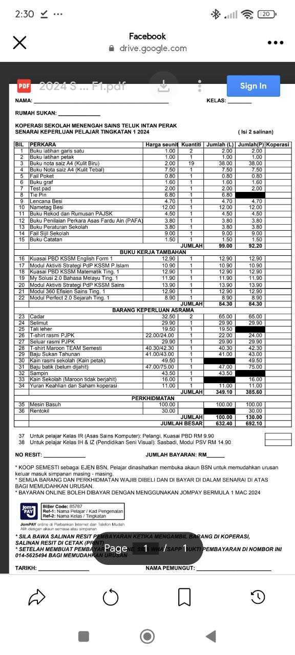 Sila buka link dan baca dengan teliti arahan yang diberikan sebelum membuat pendaftaran dan menghantar borang "Google Form" ini kerana nombor rujukan bayaran diperlukan untuk direkodkan. Sekiranya link tidak dapat dibuka, maksudnya penyertaan telah ditutup.