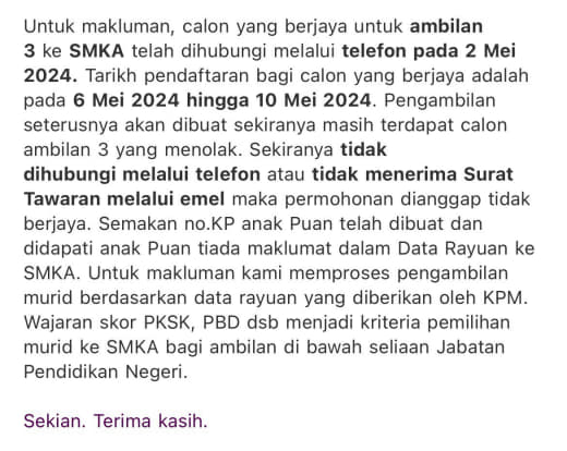 4. Rayuan 4th Intake SBP & SMKA 2024