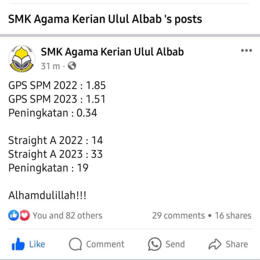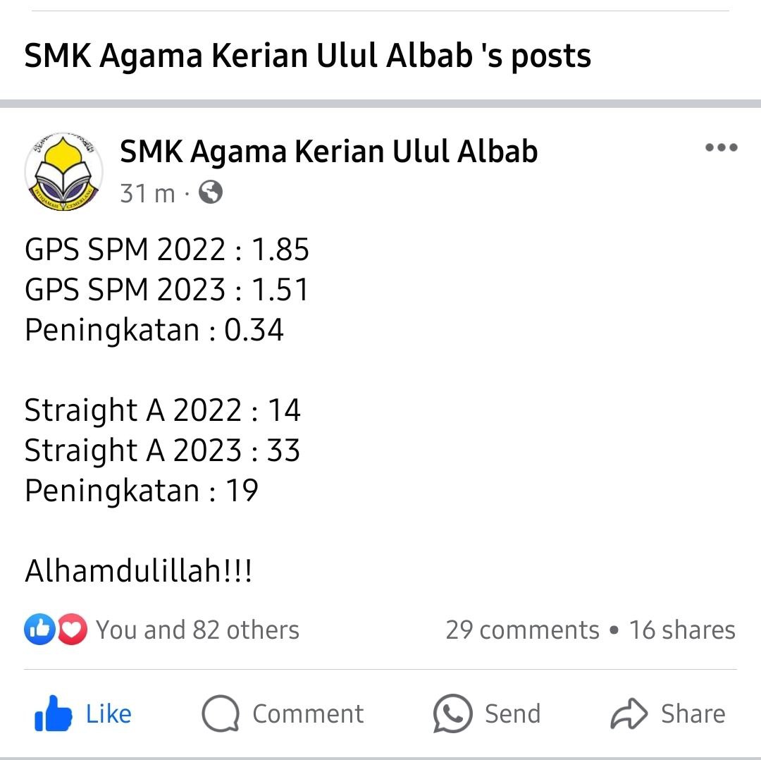 Dalam pada saya gembira dengan kejayaan cemerlang anak-anak Warriors, ayat Al-Quran di atas terlintas di benak fikir saya. Sejujurnya, ayat ini menjadikan saya agak “reserved” dalam meraikan apa-apa saja kejayaan atau nikmat yang saya terima. Dalam hal SPM kali ini, saya cukup sedar, kejayaan ini adalah ujian untuk saya dan warga SAS; adakah kami akan menjadi hamba Allah yang lebih bersyukur dan menghargai nikmat, atau kami lalai dan lali sehingga lupa untuk berterima kasih kepada Allah, Sang Pemberi nikmat, Sang Musabbib.