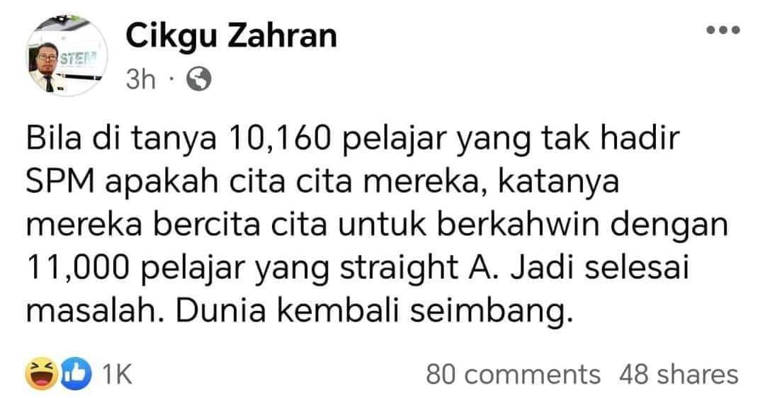 Guru-guru pula tidak terhad kepada guru tingkatan lima sahaja, malah guru-guru tingkatan 1,2,3 dan 4 juga. Guru sekolah rendah juga termasuk.