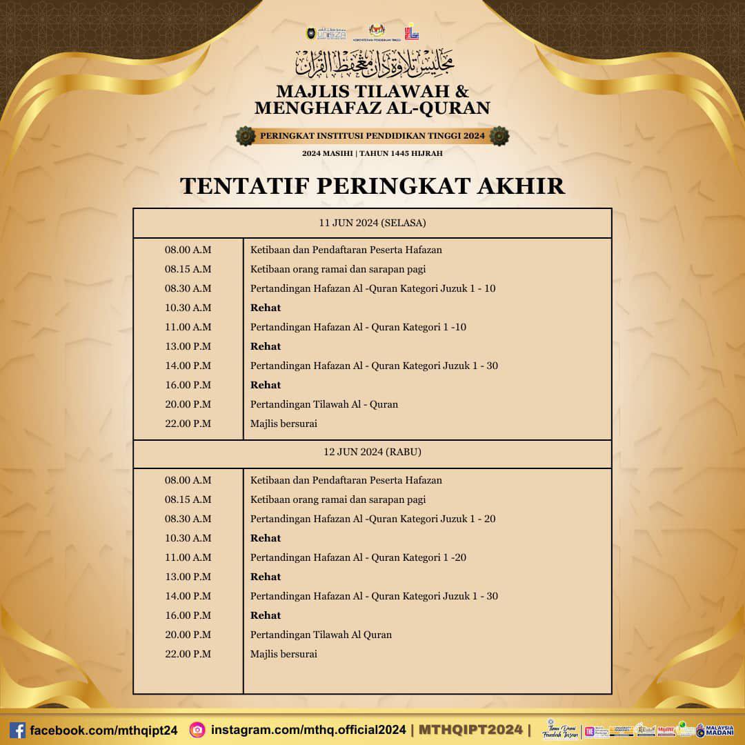 Sesi Penerangan ini akan dijalankan pada ketetapan berikut: