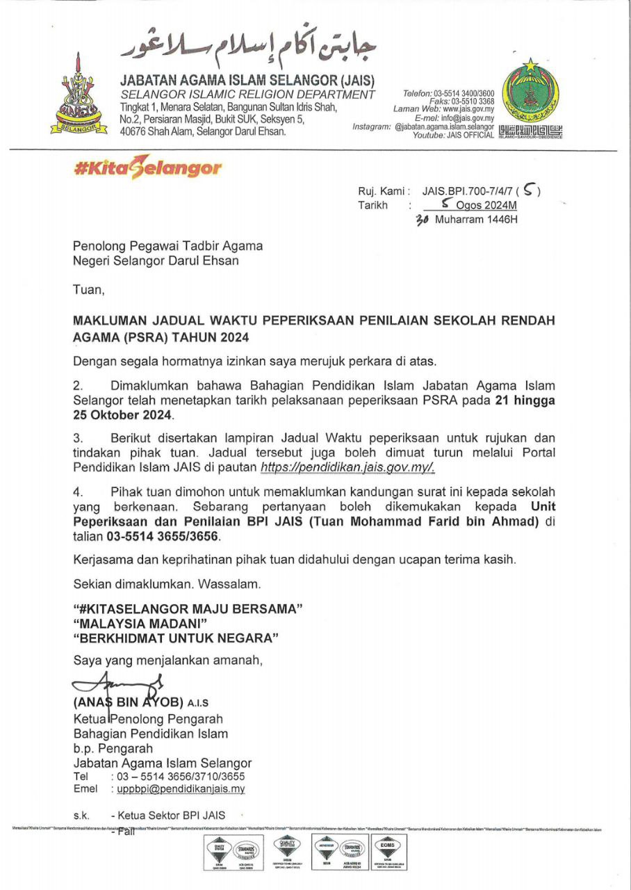 Pendaftaran Tingkatan 1 Sesi 2025/2026 : 18 Februari 2024