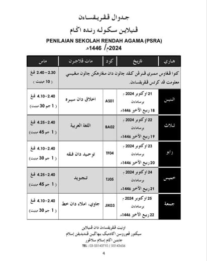 Pelaksanaan PKSK Tingkatan 4 : 23 September - 23 Oktober 2024