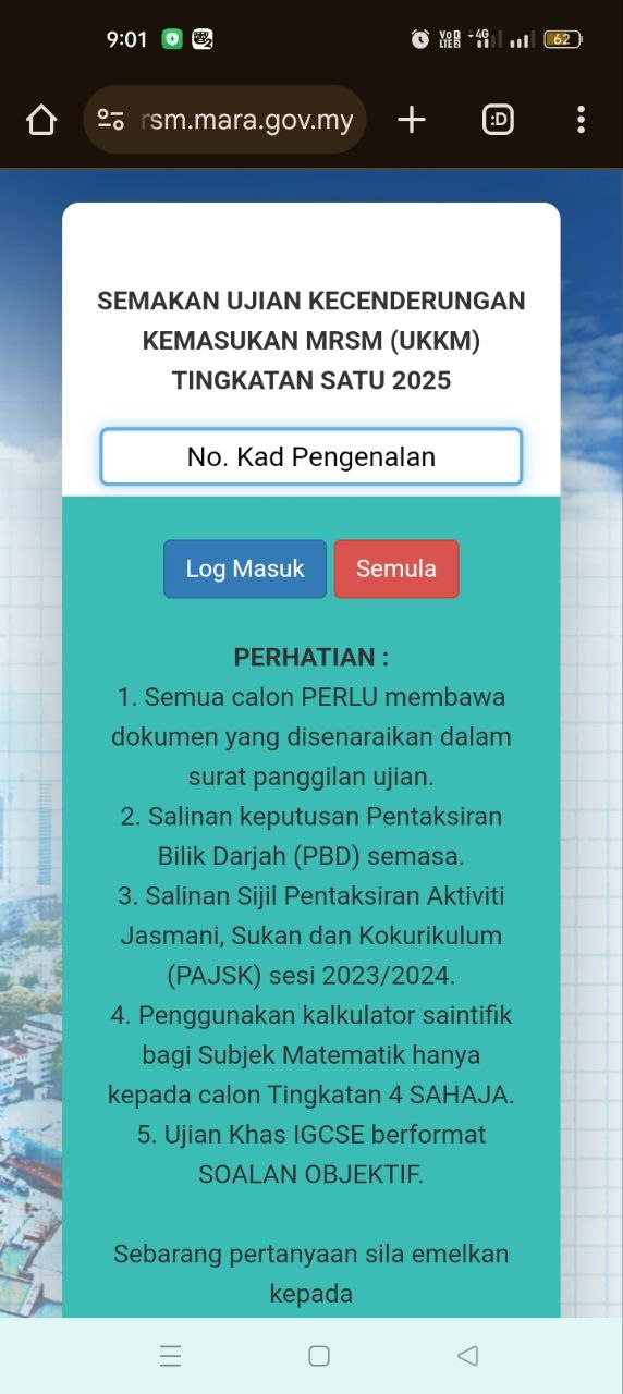 Semakan Tawaran Tingkatan 1 & 4 MRSM Sesi 2025/2026 : (tunggu pengumuman rasmi)