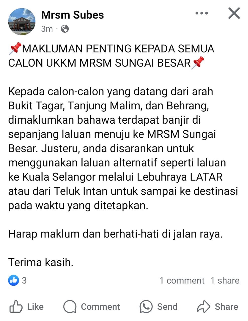 Mohon komen jika ada tambahan atau pembetulan. Hanya sekolah kerajaan atau berkaitan kerajaan dikongsikan.