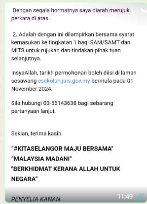 Tarikh semakan panggilan ujian kelayakan : 09/10/2024