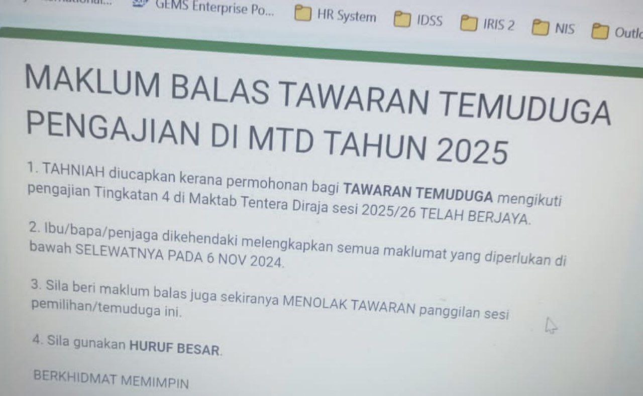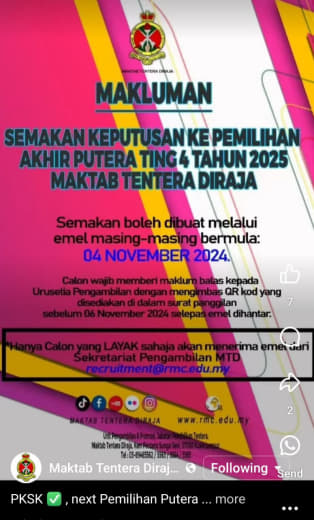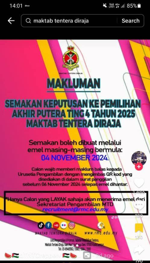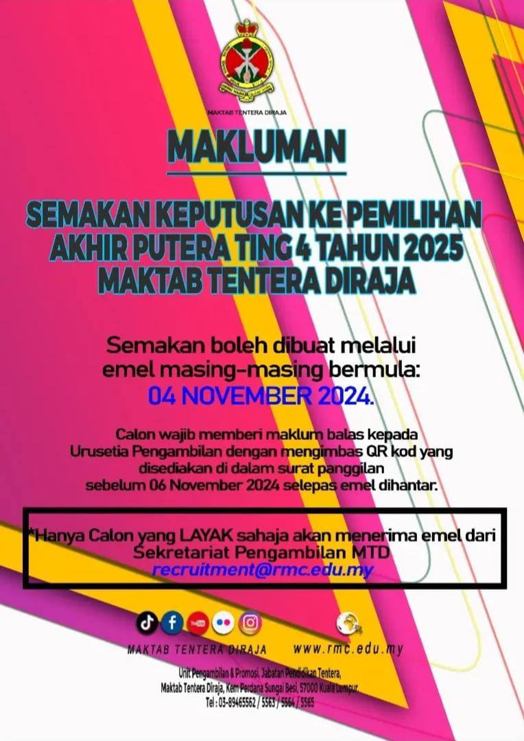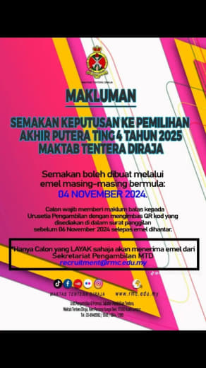 Kepada calon yang menepati kriteria & telah mengemukakan permohonan, web semakan : *