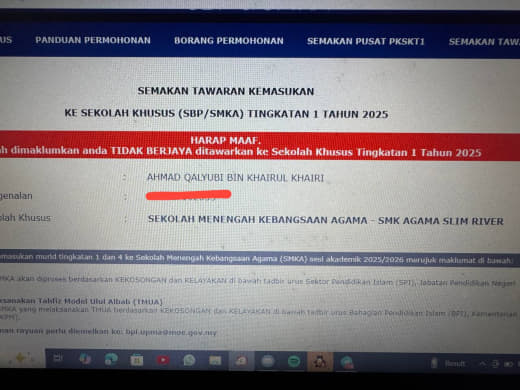 Tahniah semua ibu bapa dan anak2 yg dapat tempat! Yg dari lembah kelang, jangan risau...dapat lah kat sekolah mana pun (exclude sabah sarawak), insya allah mesti ada yg bantu chartered bas balik klang valley🤭