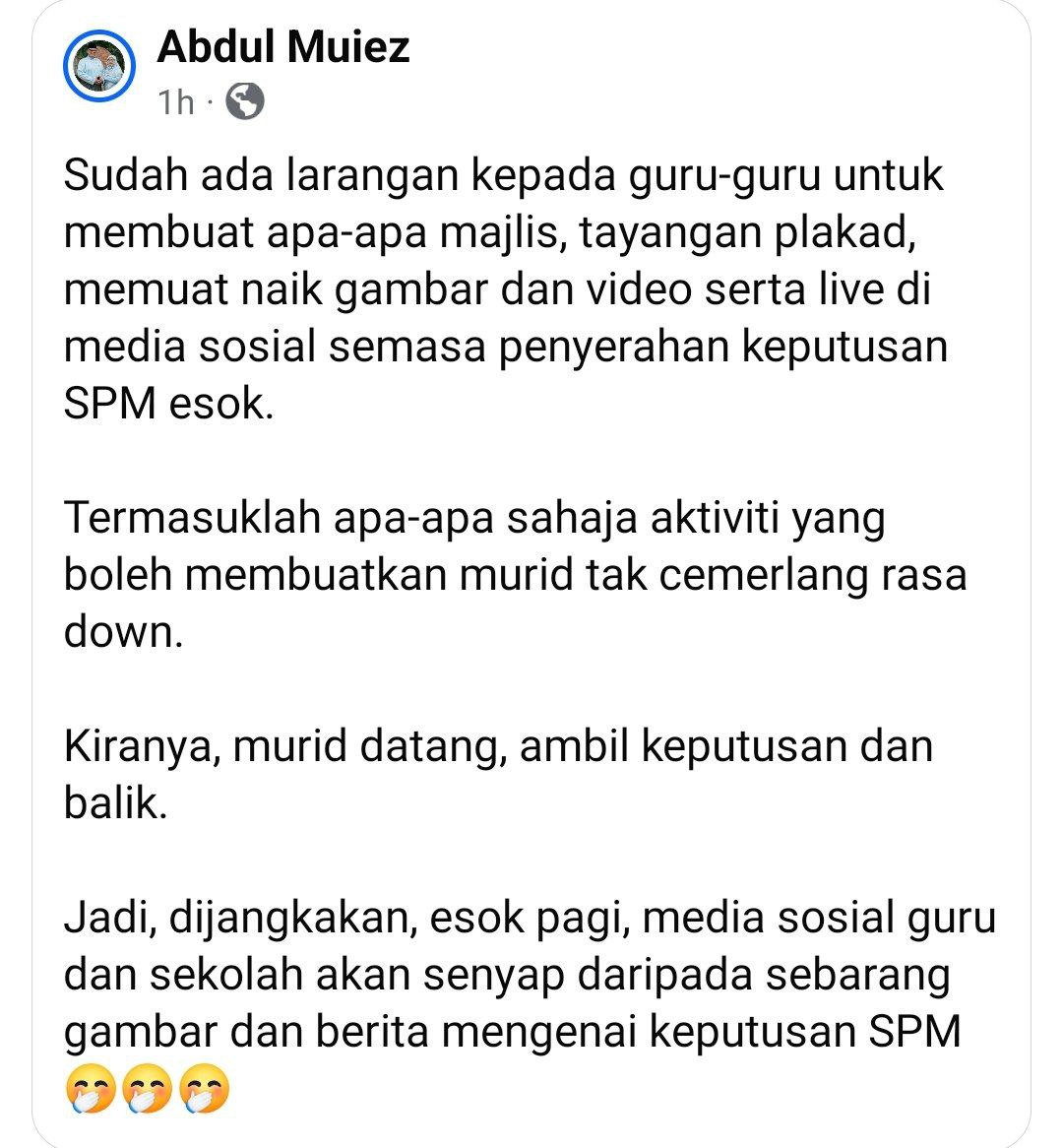 Tahniah kepada semua. Peluk anak-anak hari ini. Esok kita bimbing mereka jadi manusia berguna — bukan hanya pelajar berjaya.