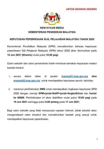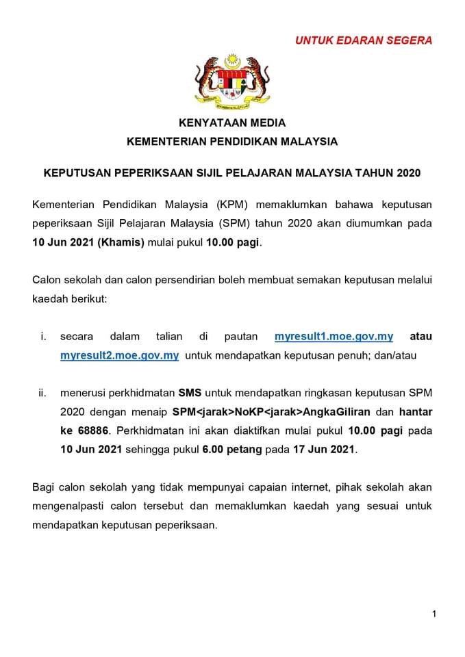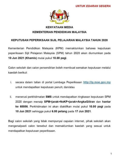 Result SPM 2020 INSYALLAH keluar 10Jun