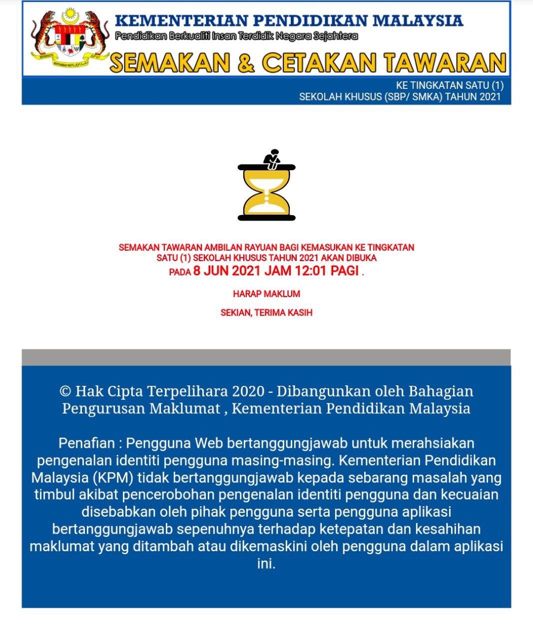 Tunggu dulu. Jangan hantar dulu Surat Rayuan 3rd Intake.. Status kekosongan hanya boleh diketahui pada 21 Jun 2021.