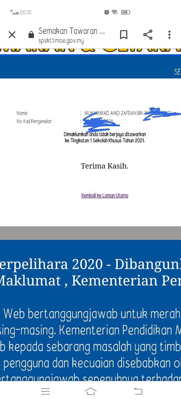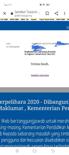 Alhamdulillah br lps semak. Anak dpt Seratas Taiping. Pilihan pertama slps pembetulan rayuan.