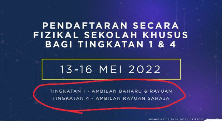 Semakan Kemasukan ke Sekolah Khusus Tahun 2022 mulai 15 Mac 2022.