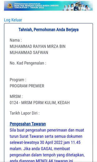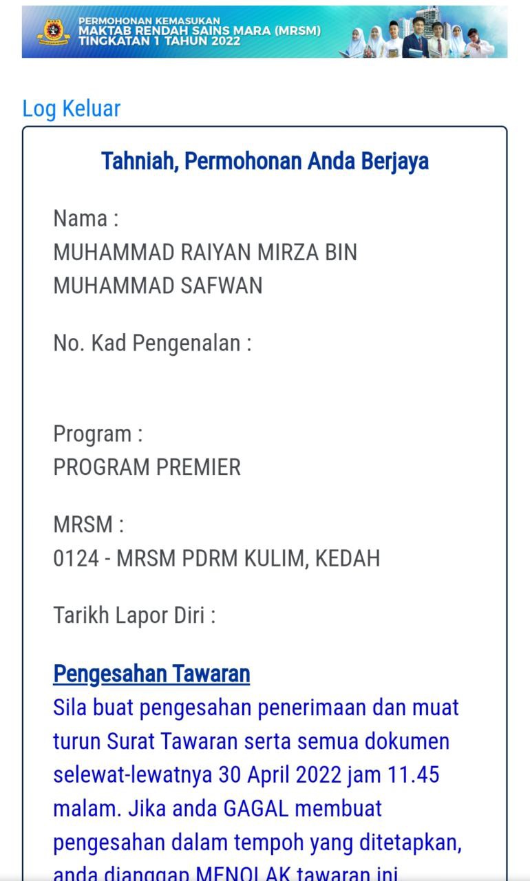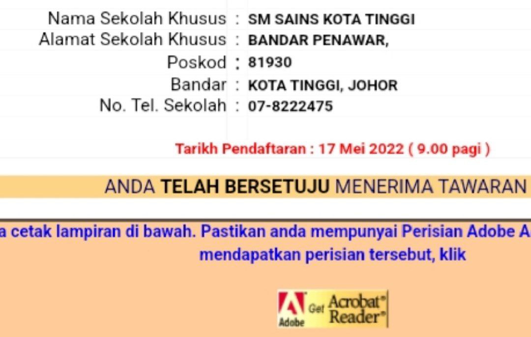 Pelajar Tingkatan 1 & Tingkatan 4 yang mendapat penempatan tawaran ke SM Sains Rembau sesi Mac 2022.