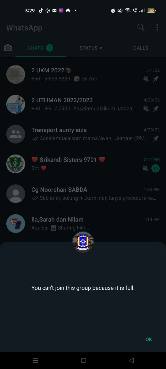 ATAU Ibu Bapa/ Penjaga boleh terus ke link whatsap group mengikut tingkatan :