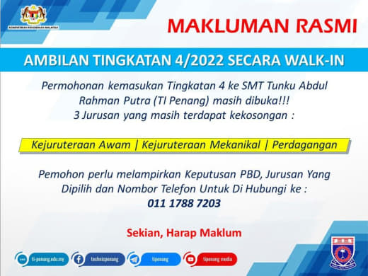 8️⃣ *HANTAR* salinan borang Permohonan dan semua dokumen yang dikehendaki di pejabat sekolah.