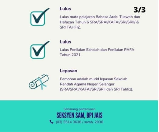 ๐นAda exam Sijil Khas Kolej (SKK) yg equivalent dgn exam Sijil Menengah Agama (SMA).
