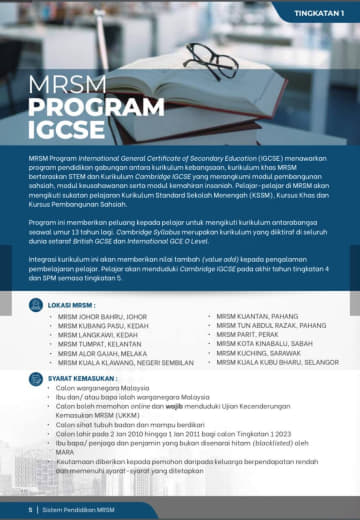 • MRSM PENDANG, KEDAH • MRSM TRANSKRIAN, PULAU PINANG